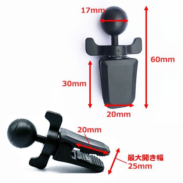スマホ スマートフォン iPhone アイフォン 車 アクセサリー 17mm ボール エアコン 吹き出し口 吹出口 送風口 クーラー 暖房 ルーバー 羽 クリップ 携帯 挟む 車載 パーツ スタンド ホルダー 固定 接続 【送料無料】