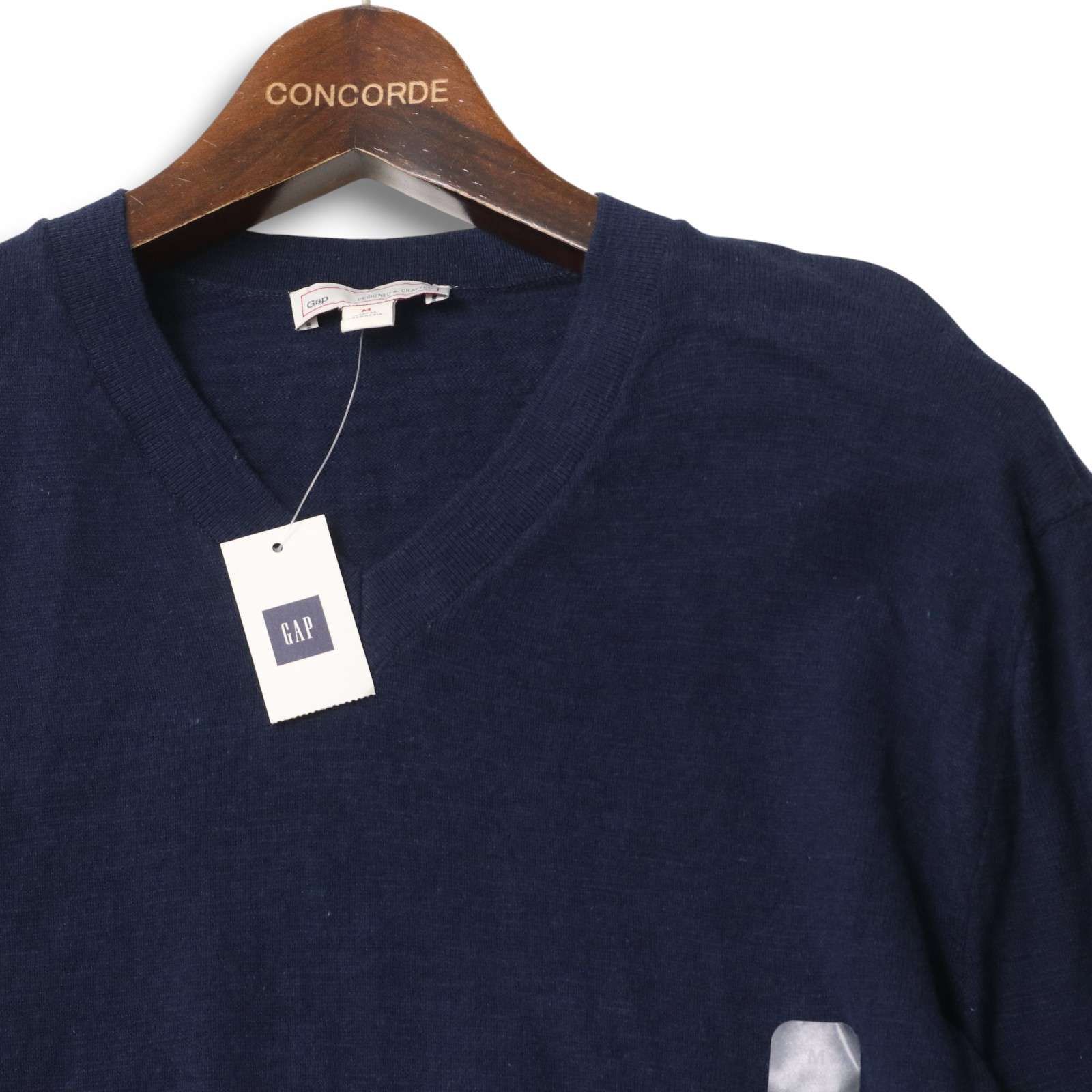 【新品 未使用】 GAP ギャップ 通年★ Vネック コットン ニット セーター Sz.M メンズ 紺 ネイビー