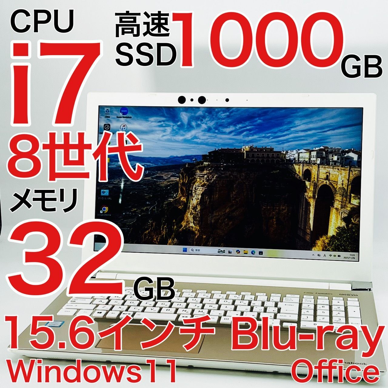 Core i7 8世代 32GB ノートパソコン Windows11 オフィス付き TOSHIBA dynabook T75/GGS 2018年式