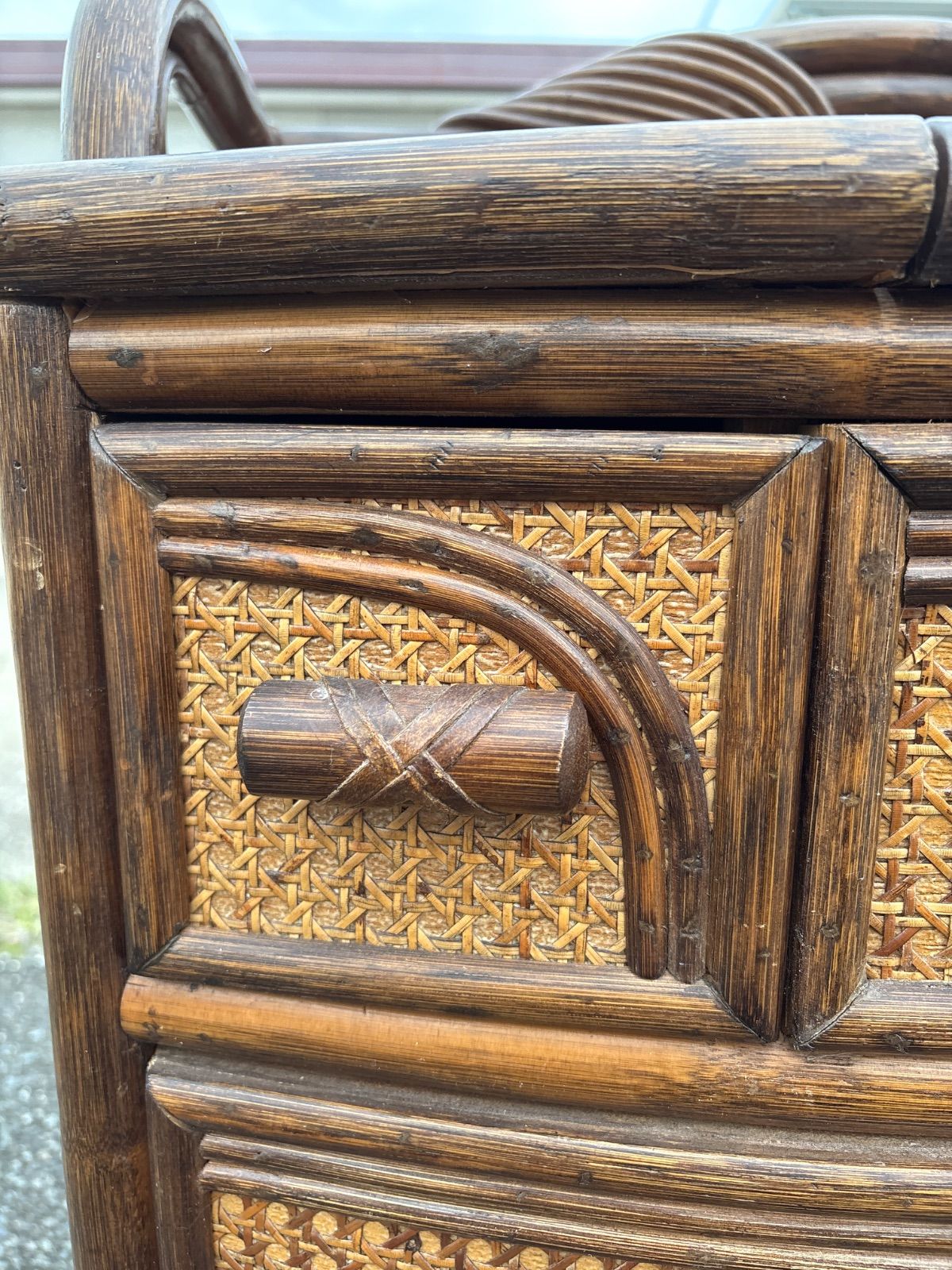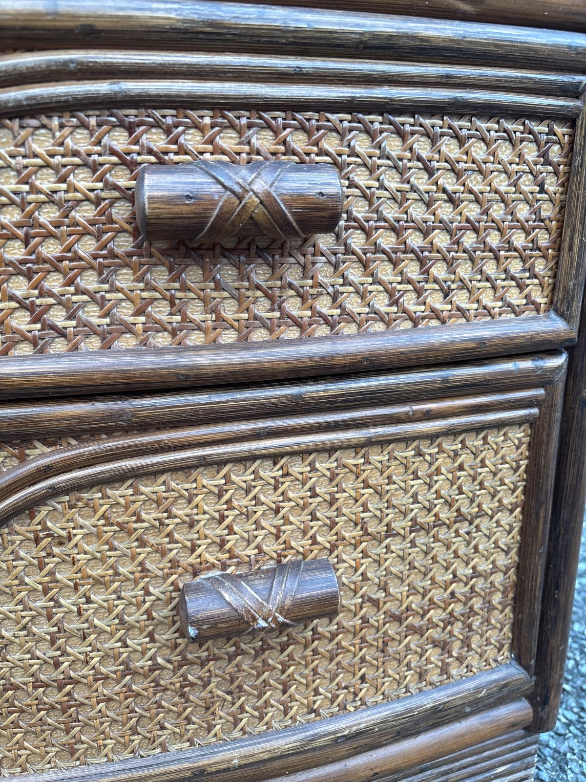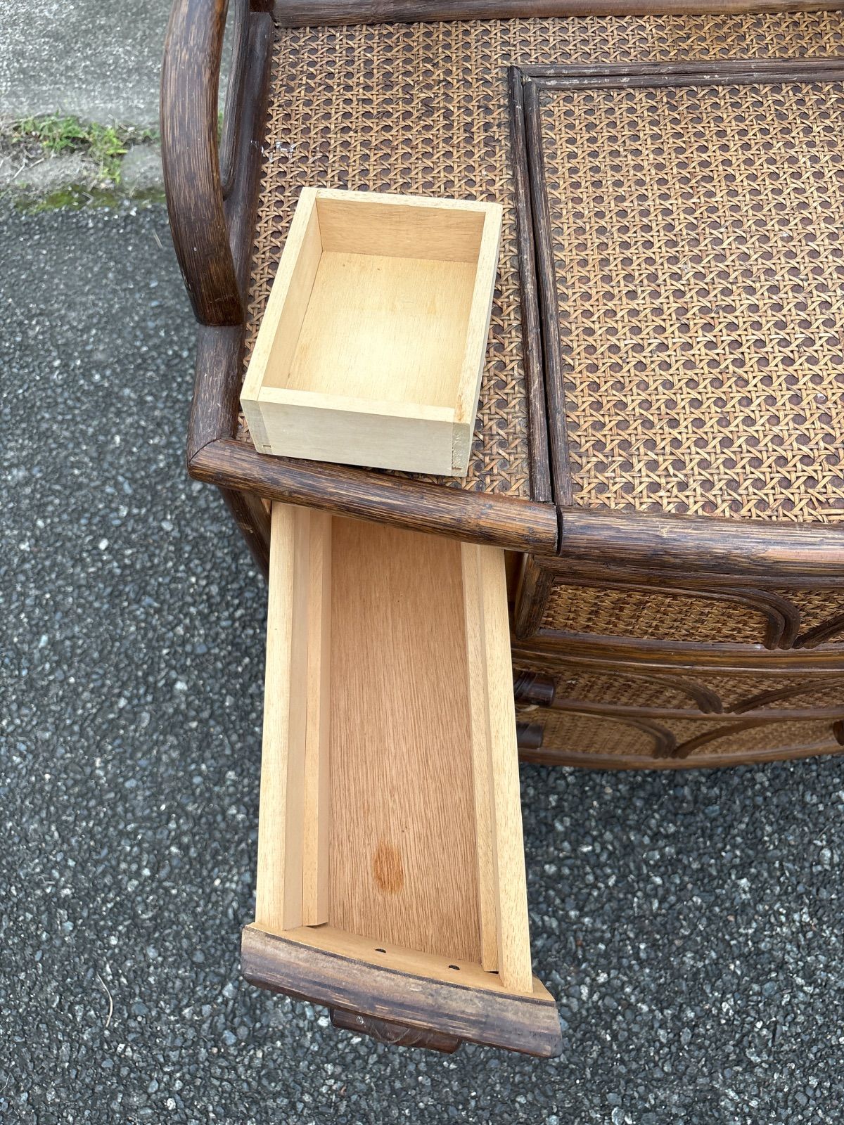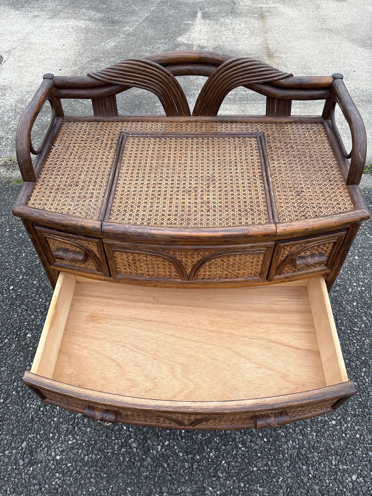 レトロ 鏡付き3段ラタンチェスト ドレッサー 収納棚 衣装 衣服 籐 天然素材 オールド レア 年代物 木製 茶色 焦茶 ブラウン