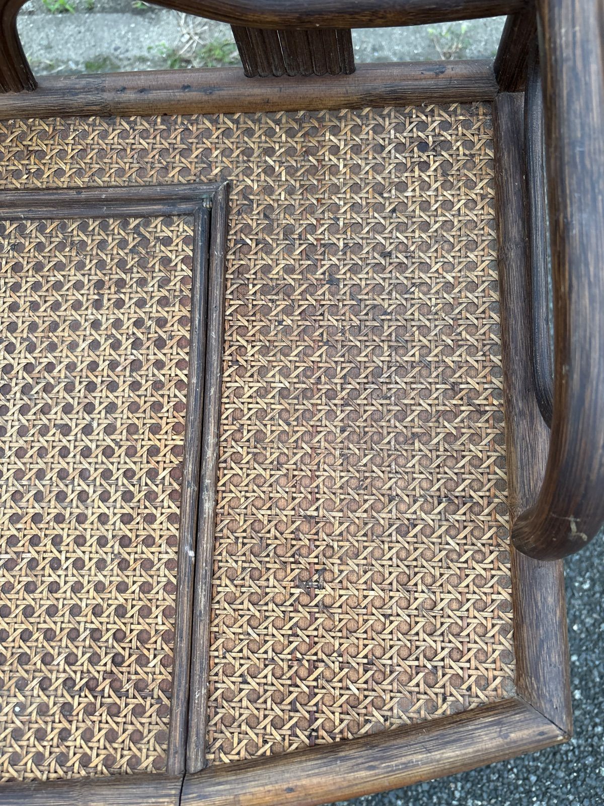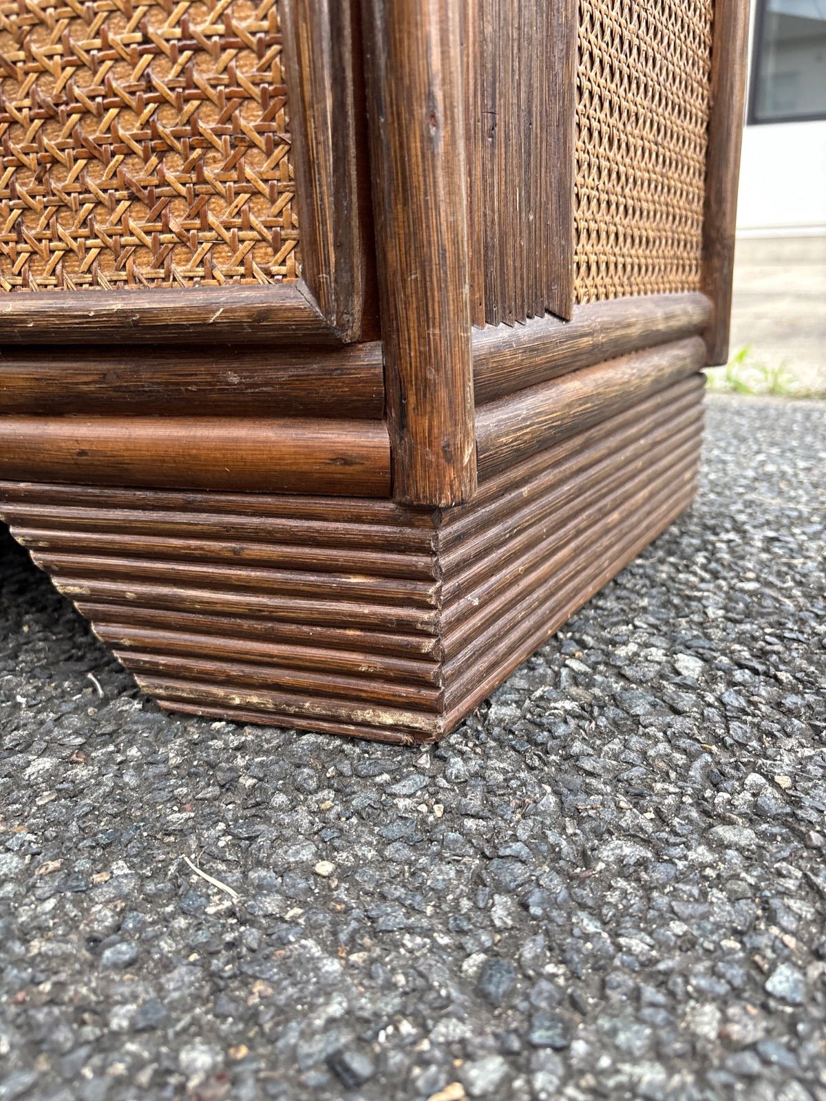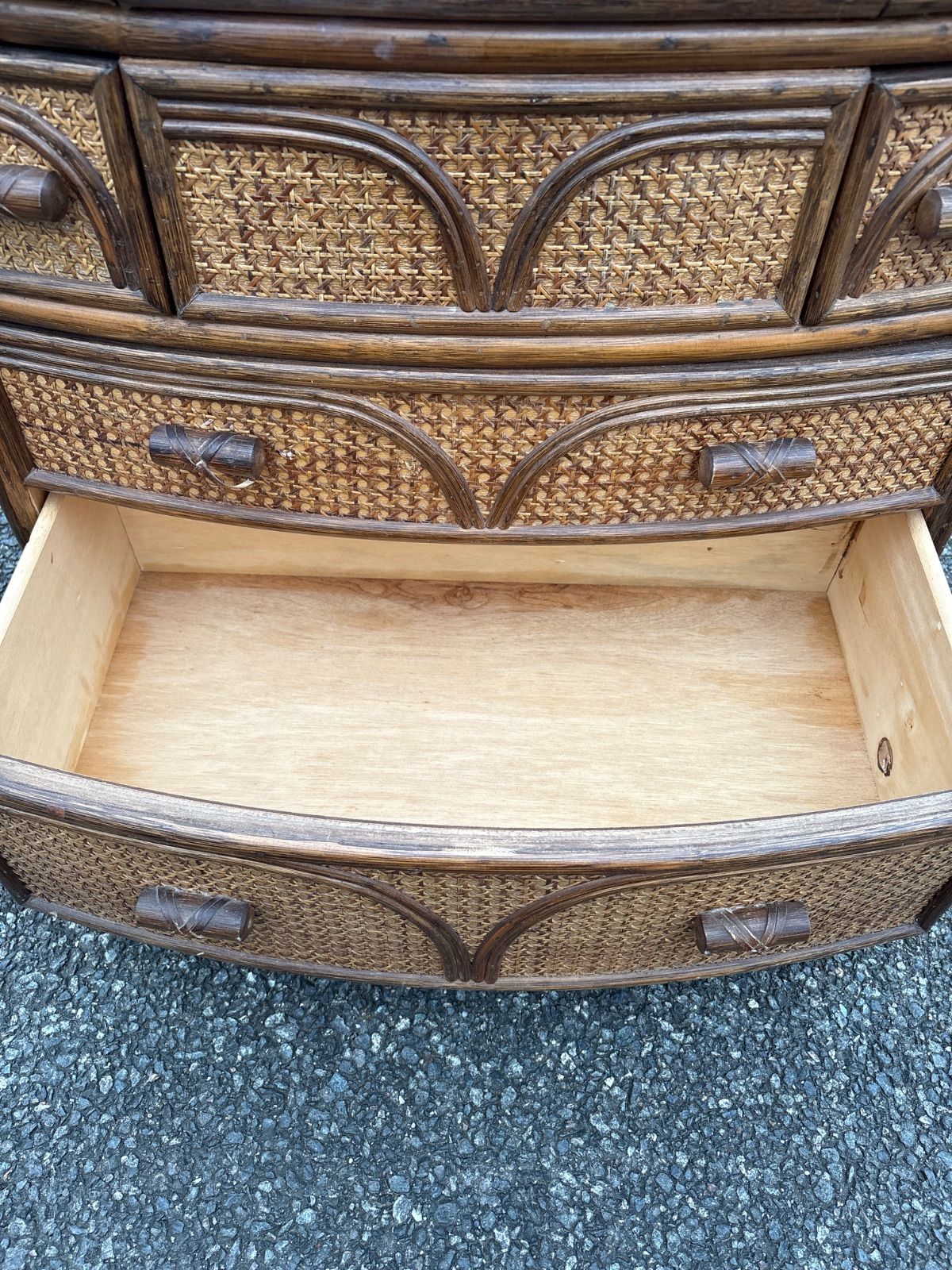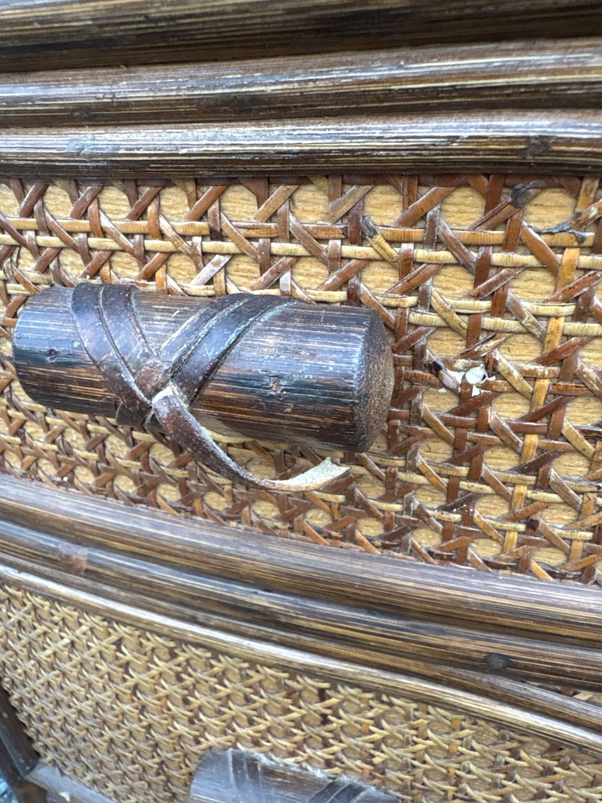 レトロ 鏡付き3段ラタンチェスト ドレッサー 収納棚 衣装 衣服 籐 天然素材 オールド レア 年代物 木製 茶色 焦茶 ブラウン