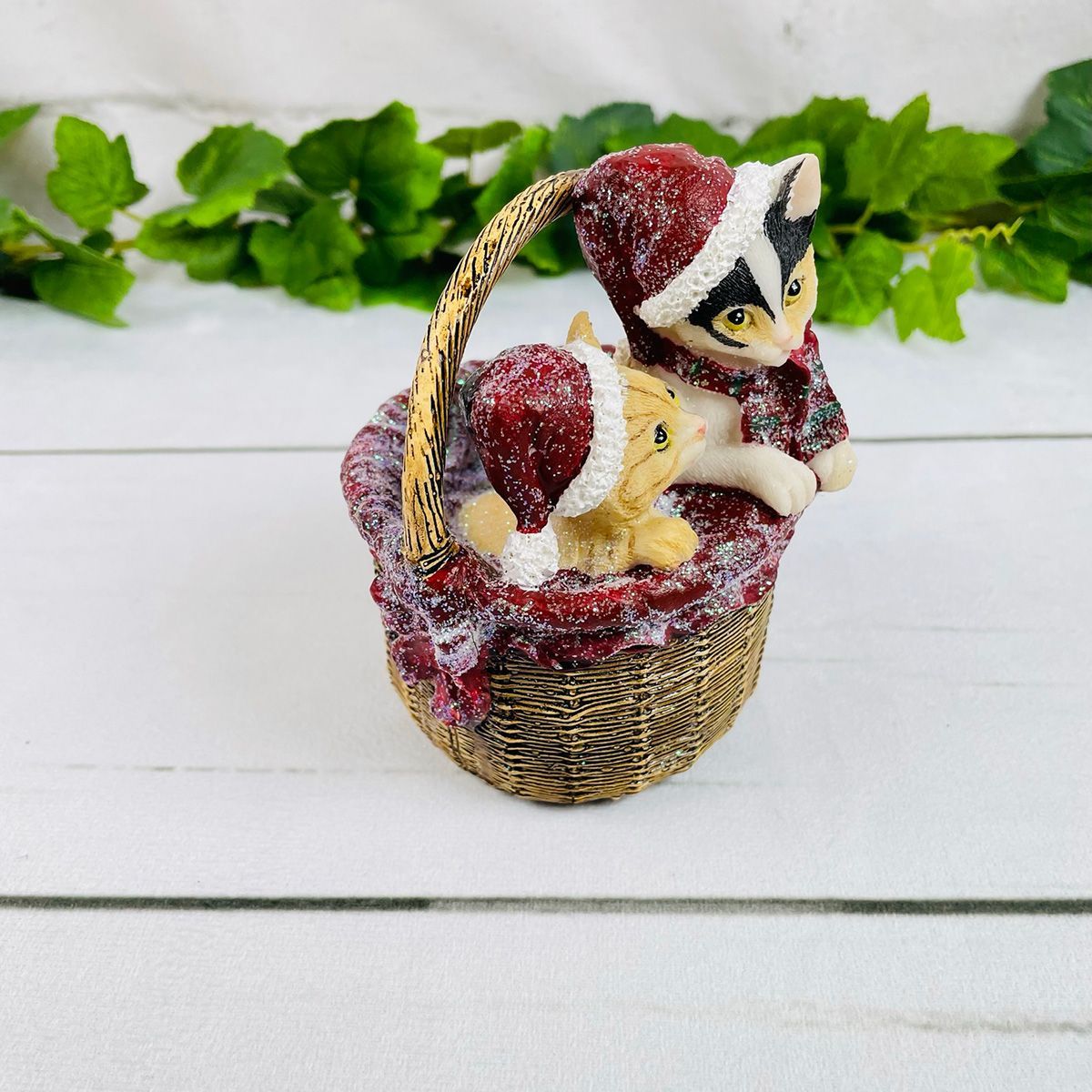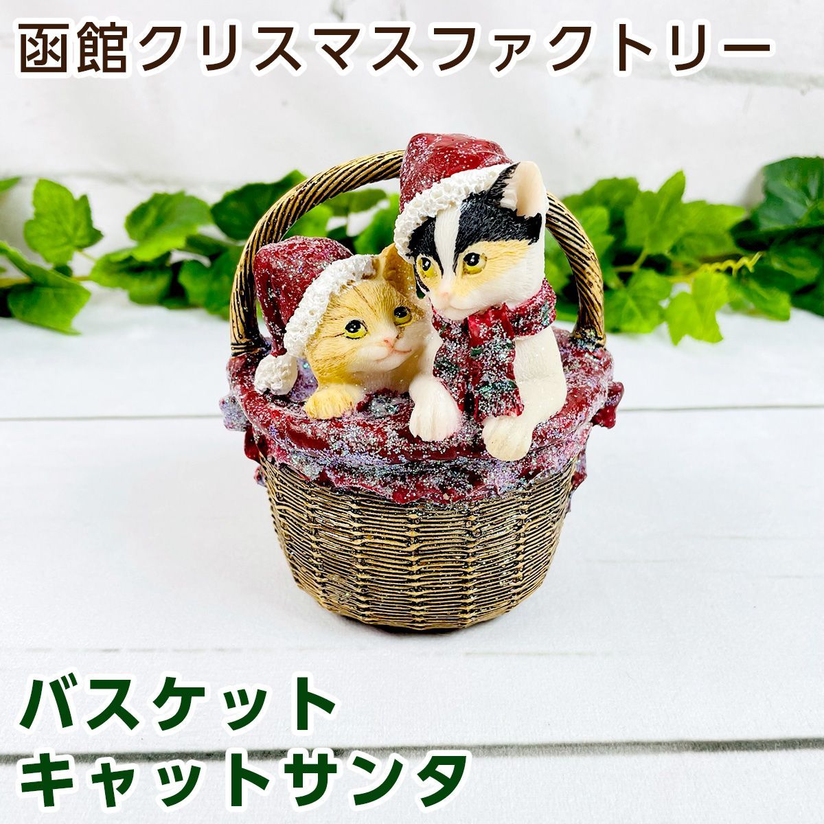 函館クリスマスファクトリー クリスマスアニマルオブジェ バスケットキャットサンタ ペア A(トラ猫・三毛猫) 21376
