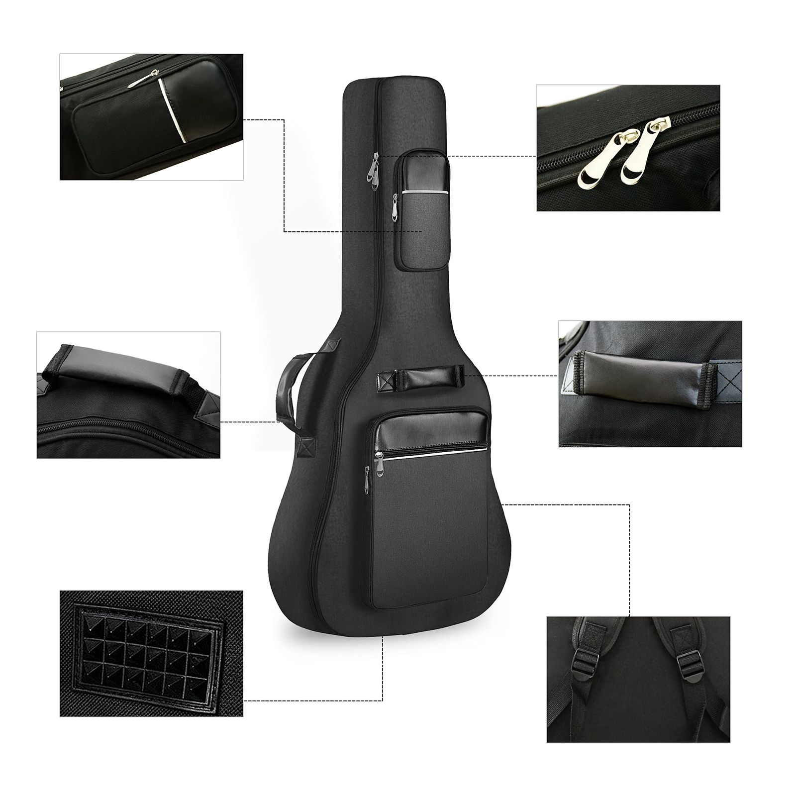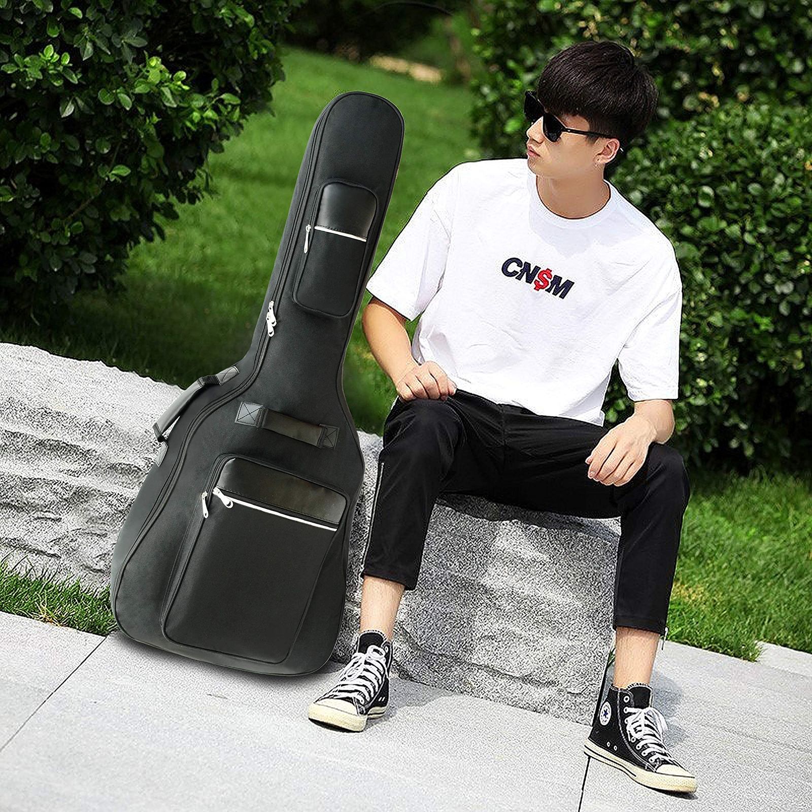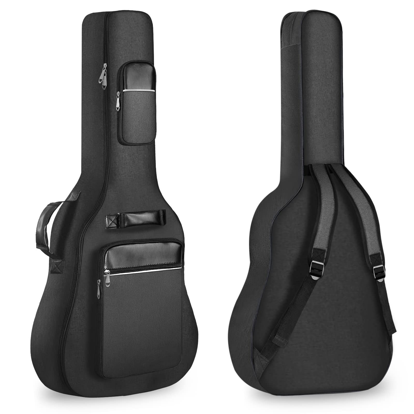 【迅速発送】アコースティック ギター ギグバッグ 40-41インチ用 ギターケース 8mm スポンジ ギターソフトケース 楽器バッグ 軽量 厚い肩 大容量ポケット 肩掛け 手提げ 600D防水 オックスフォード布 ブラック