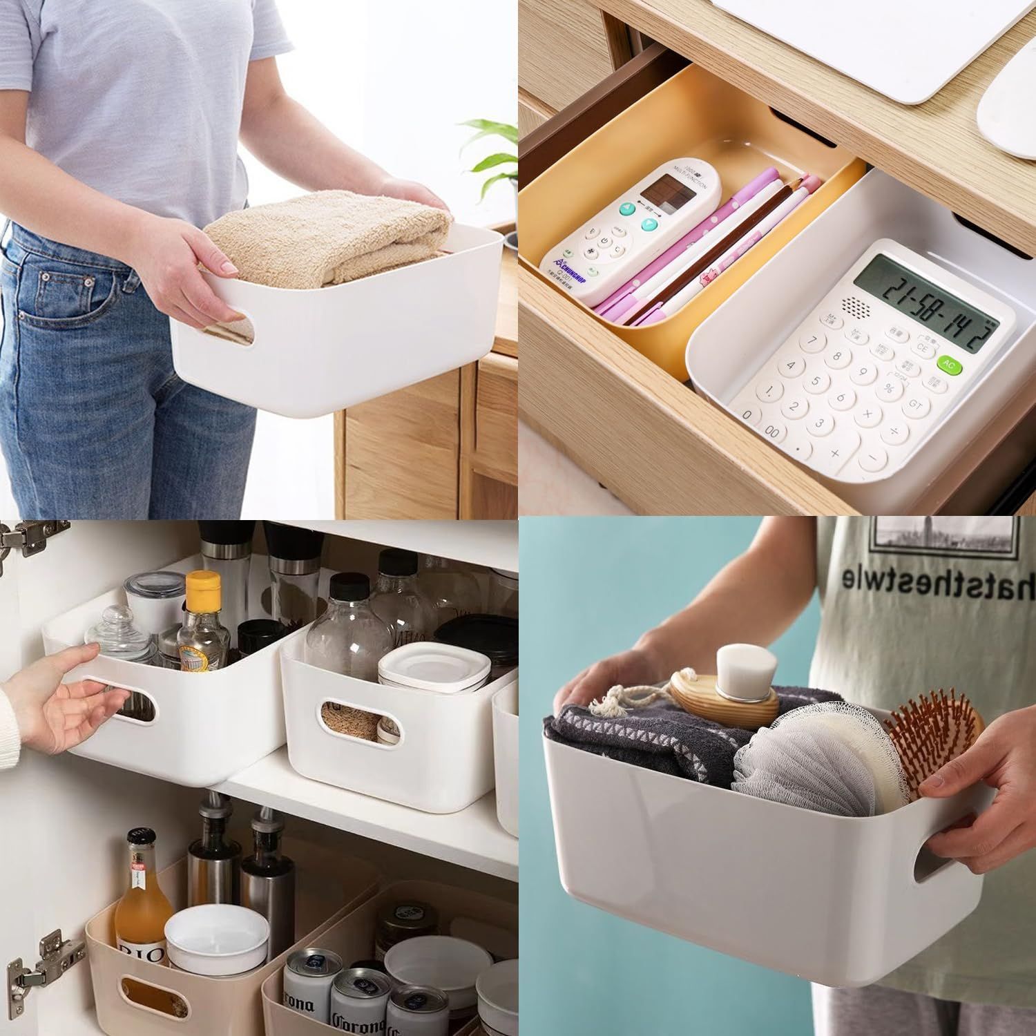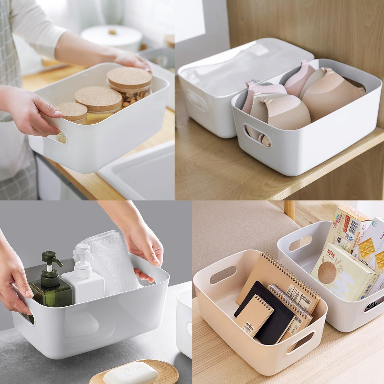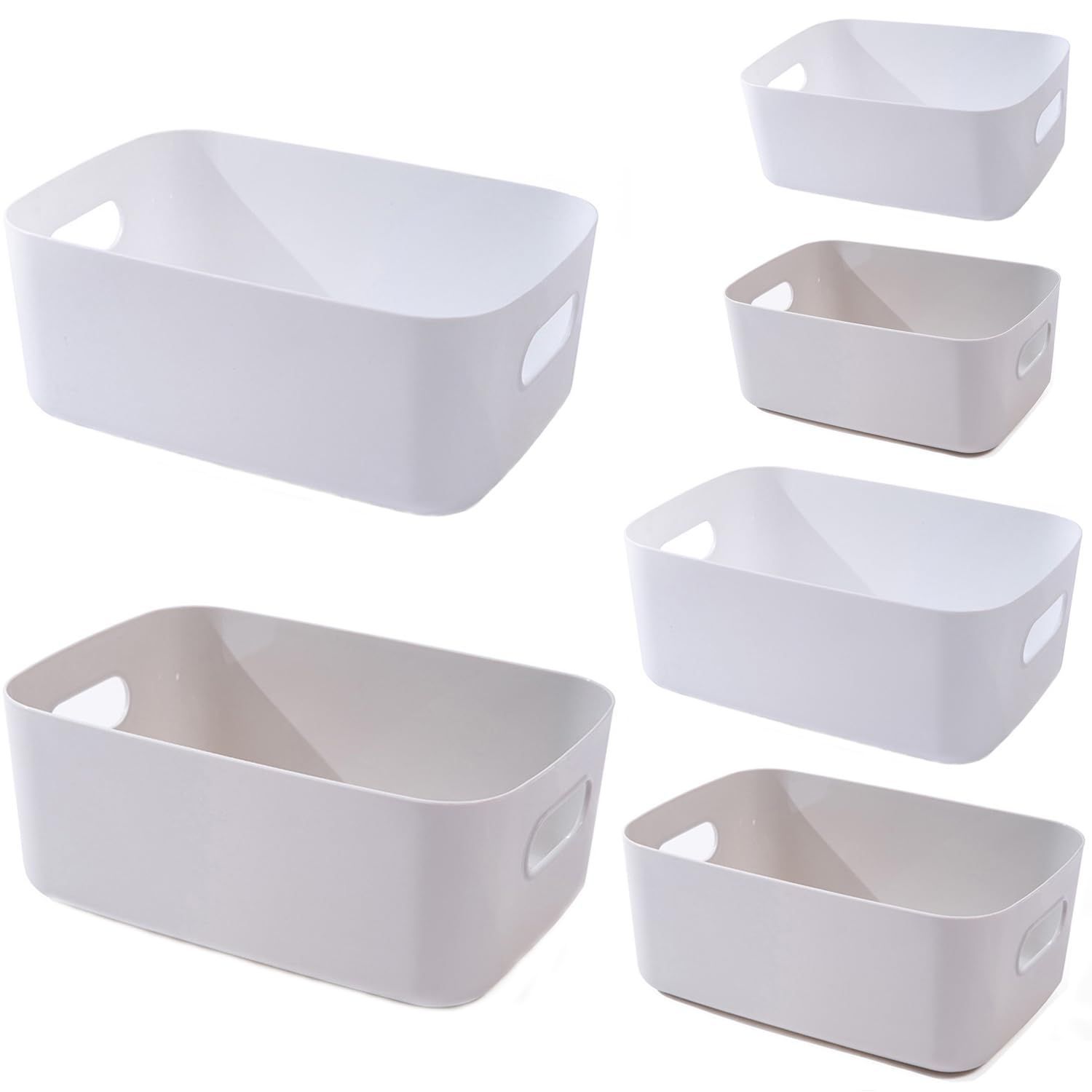 【人気商品】収納かご プラスチック ポリプロピレンケース やわらか 取っ手付き 小物入れケース (ホワイト+グレー) 積み重ね 6個セット 収納ボックス Bakie Vivi