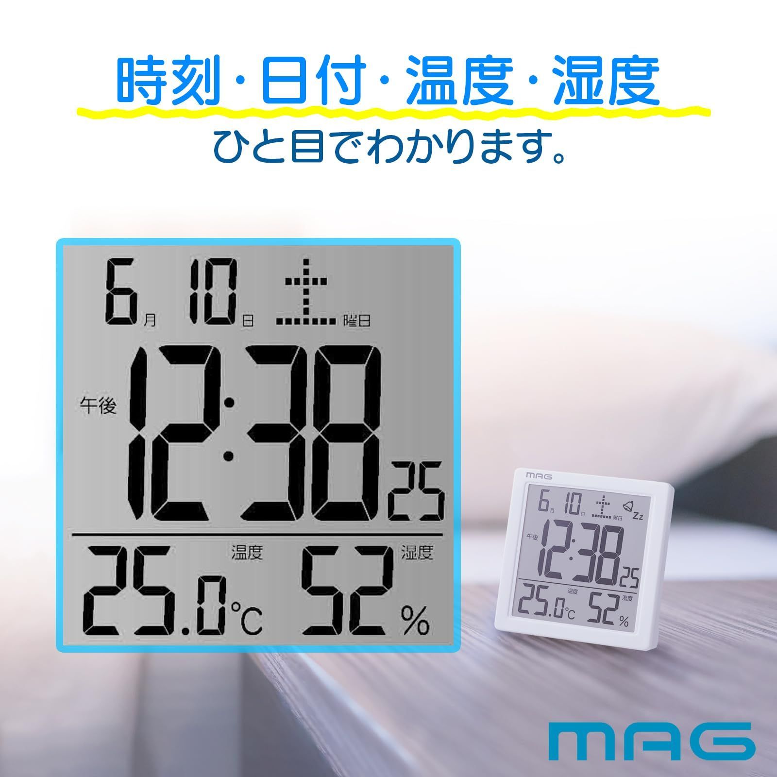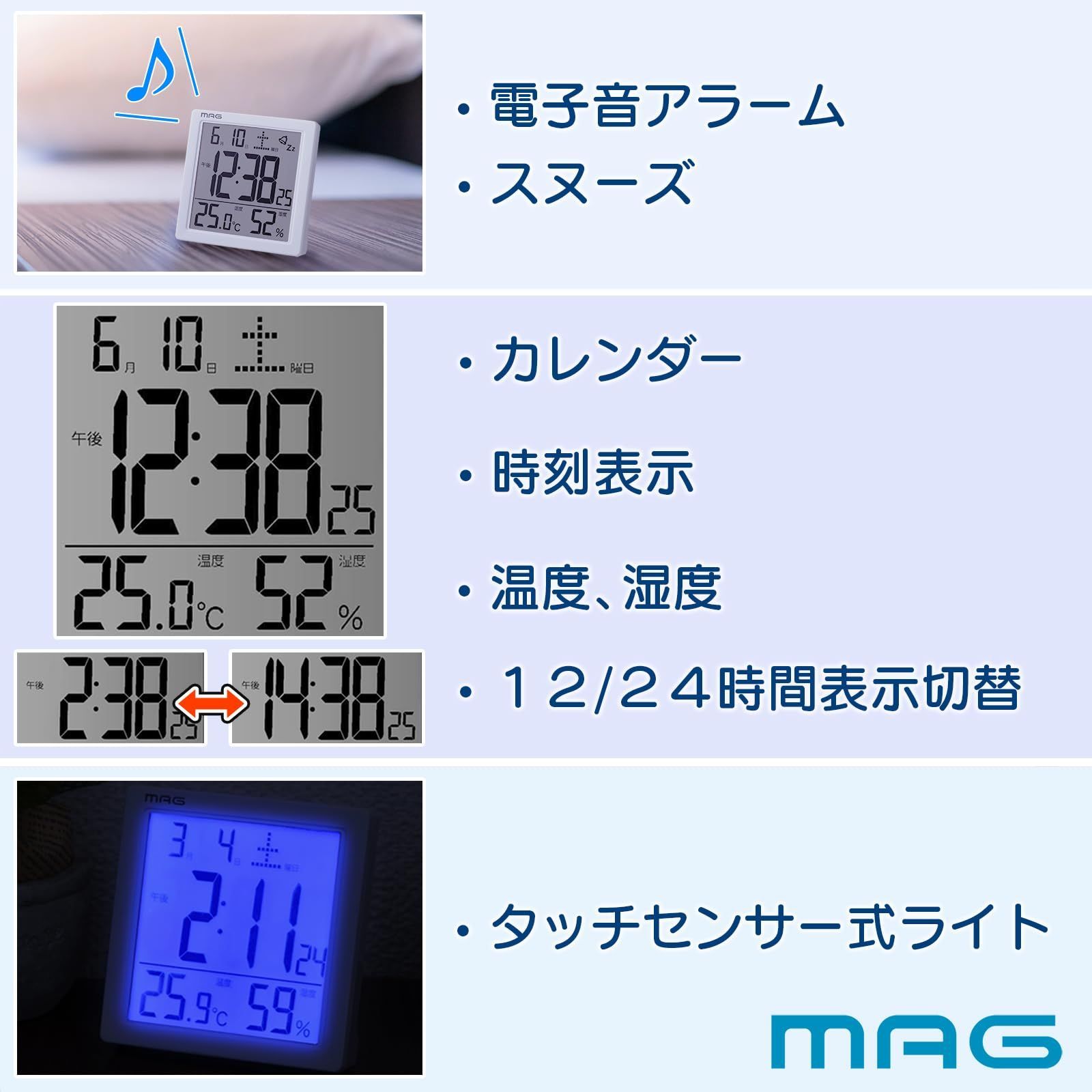 MAG(マグ) 目覚まし時計 デジタル カッシーニ バックライト スヌーズ機能付き ホワイト T-726WH-Z