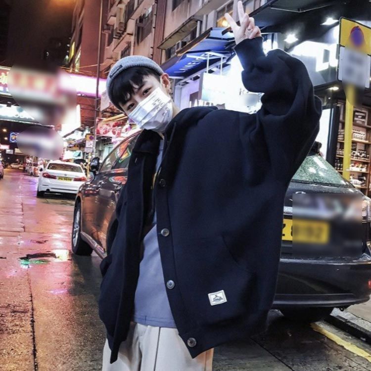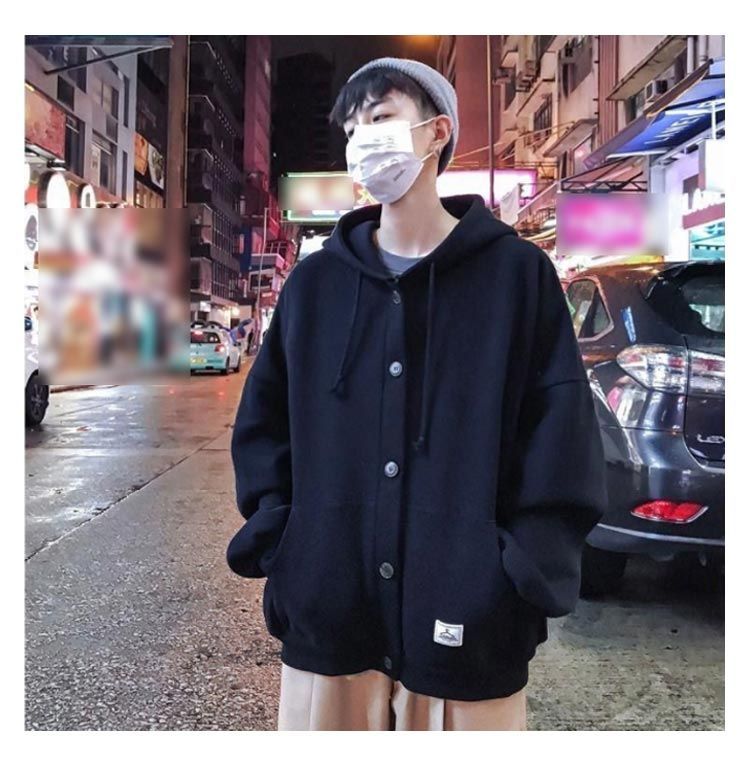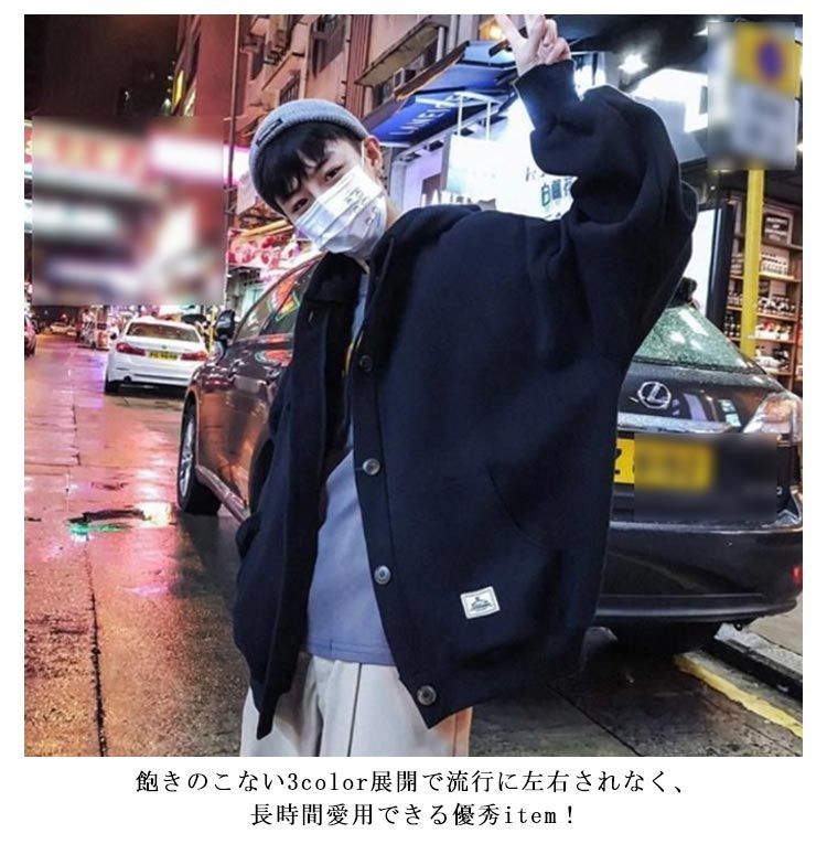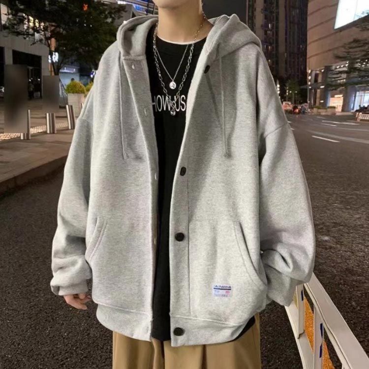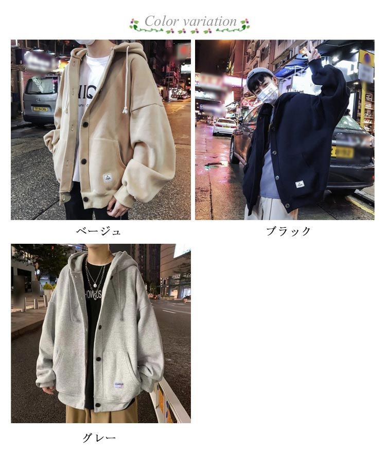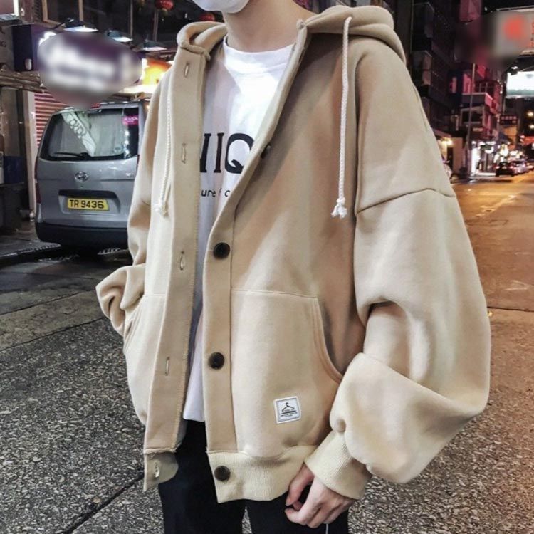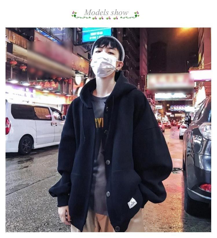 原宿風 ビッグシルエット 裏起毛 パーカー アウター カーディガン メンズ ボタン開き フード付きパーカー 大きサイズ ストリート系 学生 通学 中学生#conne582562