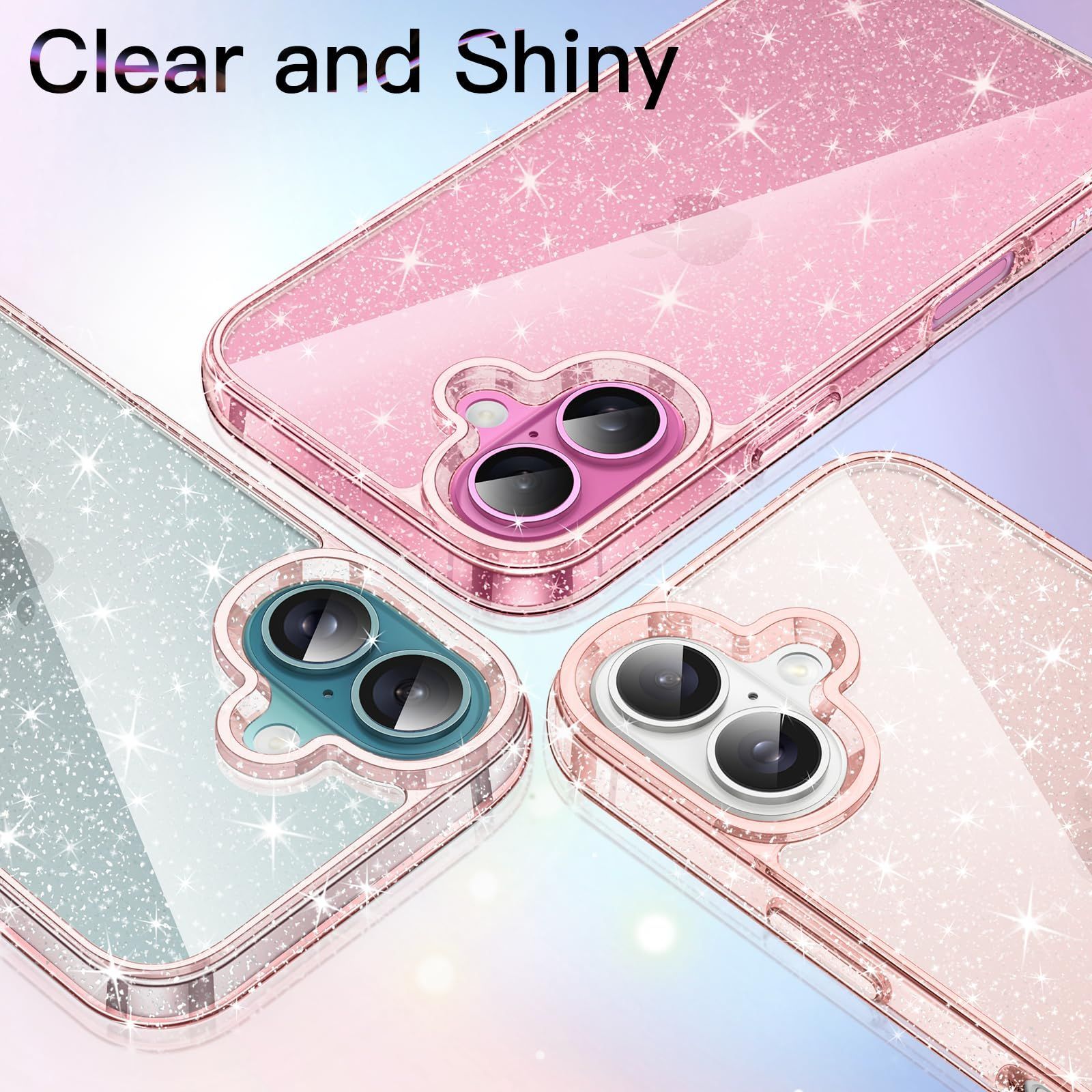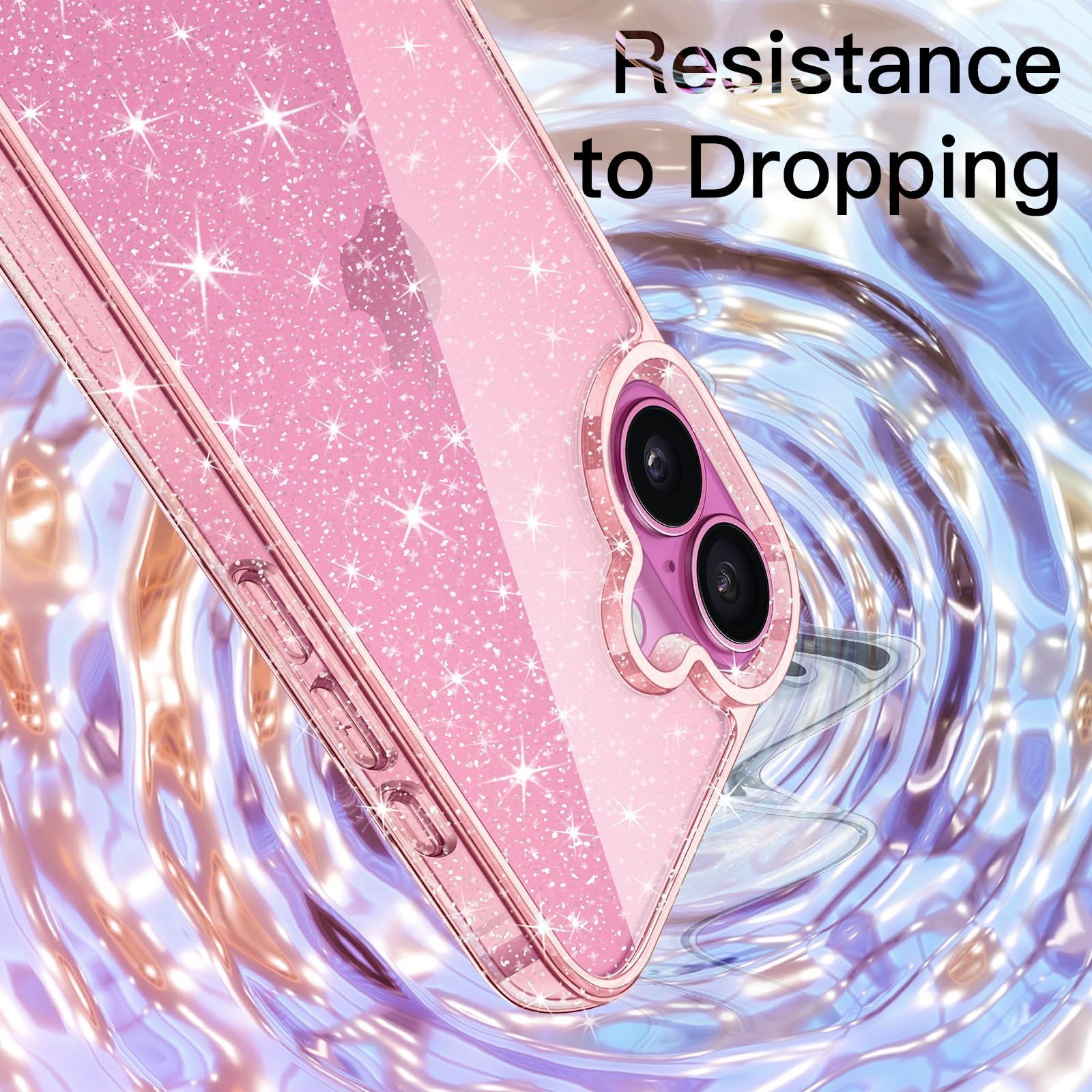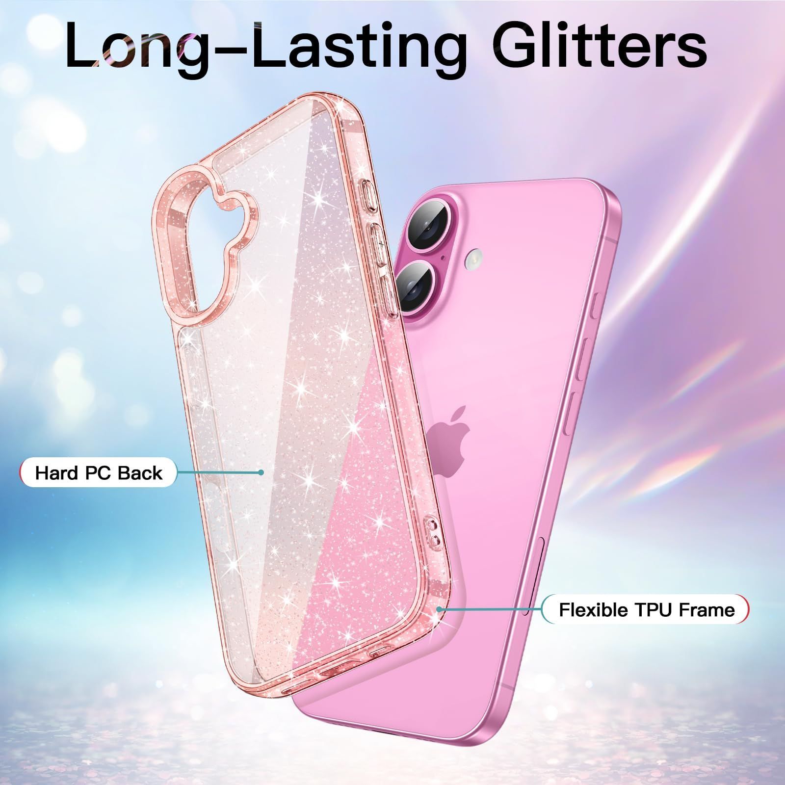 新品 JETech iPhone 16 6.1インチ用 きらきら ケース ブリンブリン 衝撃吸収 バンパーカバー かわいい キラキラ 女性用 女子向け (ライトピンク)