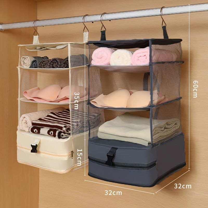 4段のハンギングクローゼオーガナイザー - 多くのコンパートメントを備えた重量級のファブリックストレージラック、デリケート、軽量で大容量のベッドルーム、クローゼット、旅行のエッセンシャル用