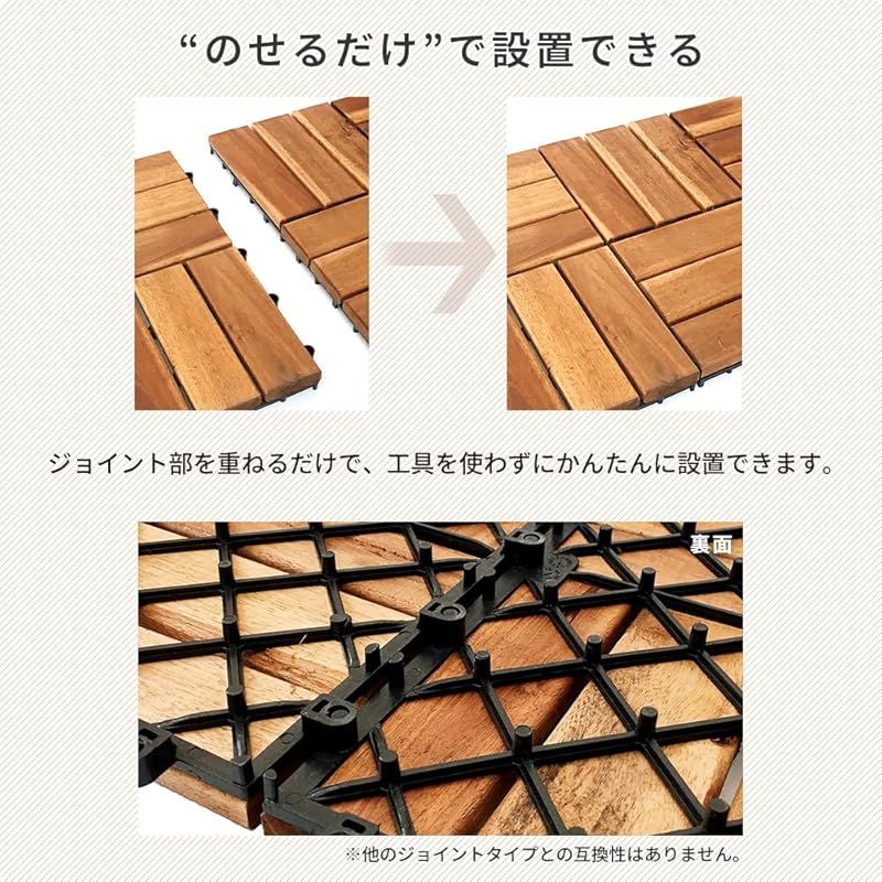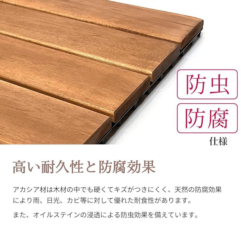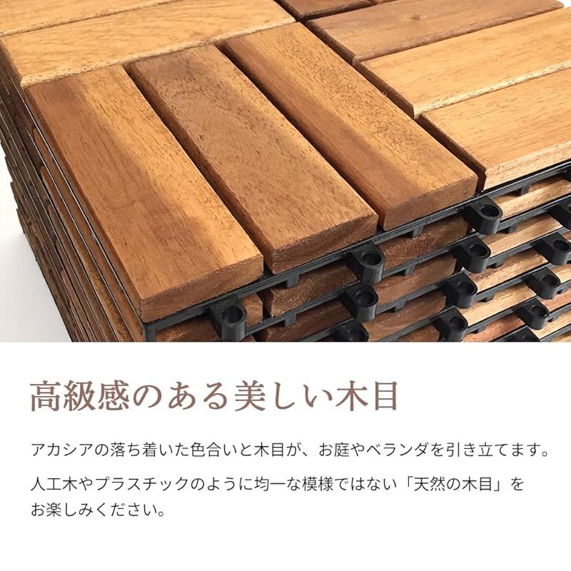 プロテック ウッドデッキ パネル 天然 アカシア 無垢材 防虫 防腐 仕上げ ジョイント タイル 10枚セット (3枚回し) 0