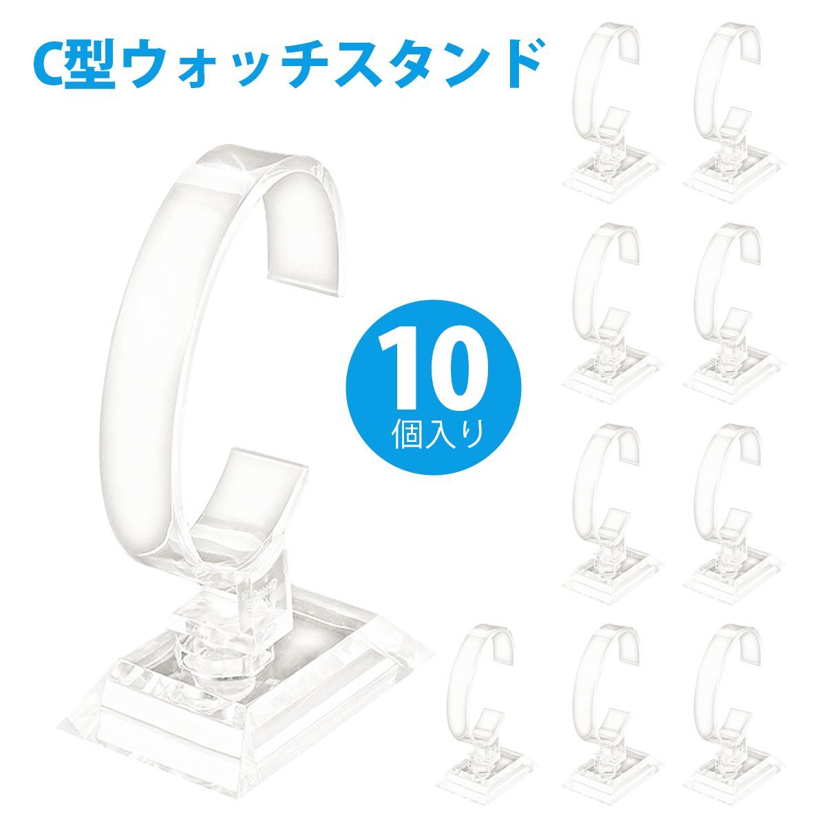 【10個入り】時計スタンド 腕時計 スタンド 透明 ジュエリースタンド ブレスレットスタンド チェーンリング Cカーブ ジュエリーホルダー ABS製 軽量 丈夫 簡単お手入れ