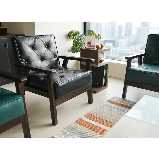 With ソファ 1人掛け コンパクト ダイニングチェア レトロ アームチェア アンティークソファ おしゃれ レザー PVC 合成皮革 vn001-1p