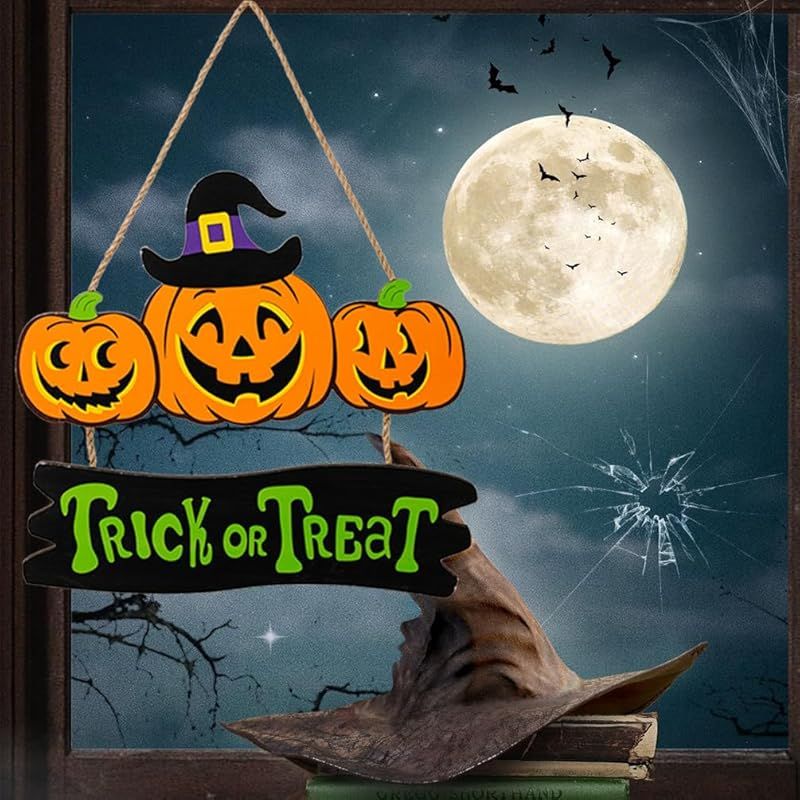 【新品】 ハロウィン 飾り ペンダントの装飾 木製 看板 カボチャ、魔女 吊り串 装飾 屋内、バー、テーブルデコ飾り、デコレーション、雰囲気改善、壁、窓、パティオ、エントランス、店舗、吊り下げ飾り、贈り物 (カボチャ)