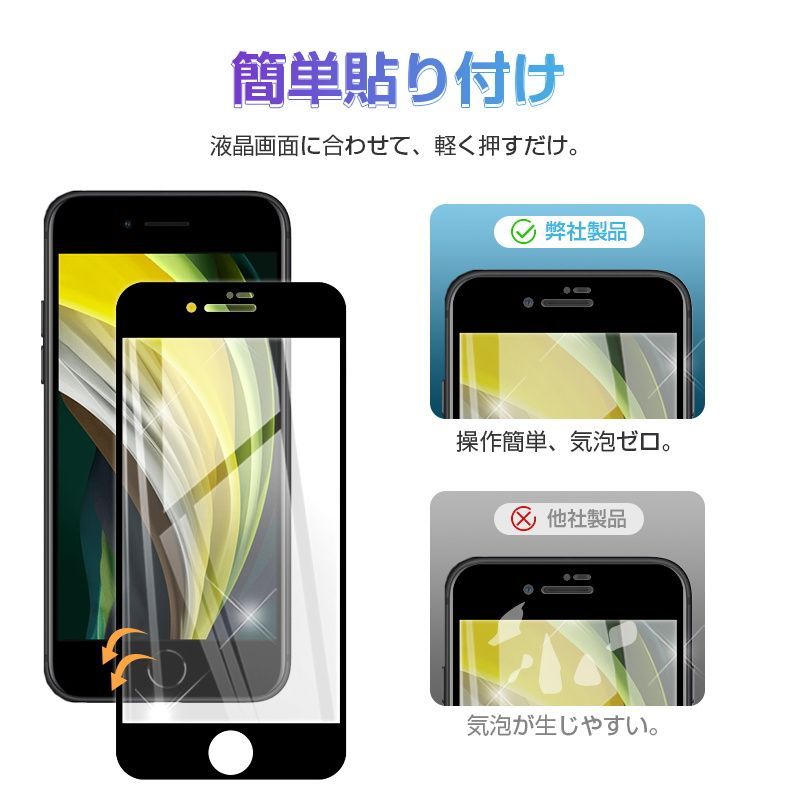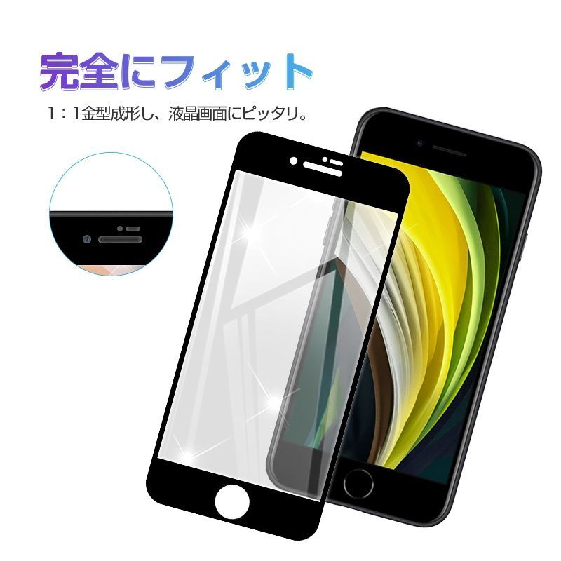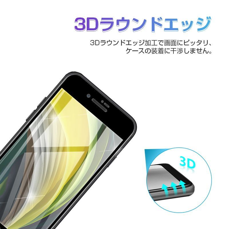 【2枚セット】iPhone SE3 第3世代 iPhone SE 第2世代 iPhone7 iPhone8 強化ガラスフィルム 液晶保護 全面保護シール 3D ガラスカバー スマホ画面保護 ガラス膜 ガラス保護フィルム 硬度9H 耐衝撃 ガイド枠付き 指紋防止