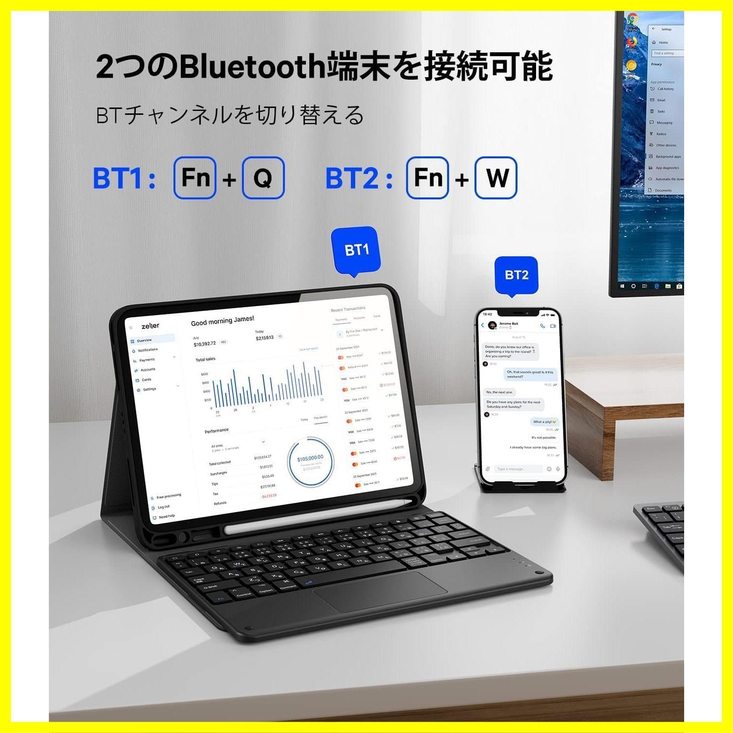 【BT5.1&マルチペアリング2台切り替え】ipad 9世代キーボードはBT5.1機能を搭載し、10メートル以内の伝送範囲で、データ転送速度と安定性も大幅アップすることが楽しめます。二つBTチャネルがあるので、1台マルチペアリングキーボードでiPadやiPhone、自由に切り替えることができます。(BT接続のみをサポートします。)注:電子レンジやルーターなどの2.4G周波数の家電製品は、現在のBluetooth帯域を占有します。 Bluetoothを使用する際は、これらの干渉源から離れる必要があります。*注:キーボードの電源を入れた状態でボタンをクリックする必要はなく、ipadのBluetoothの下にあるBluetooth名をクリックするだけで接続が完了します。 他のキーをクリックすると、ブルートゥース接続に影響する場合があります。