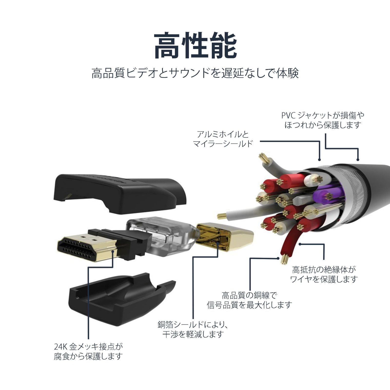 【ラスト1点】ARC対応 1.8m(タイプAオス 4K ハイスピード - ケーブル HDMI タイプAオス)ブラック ベーシック
