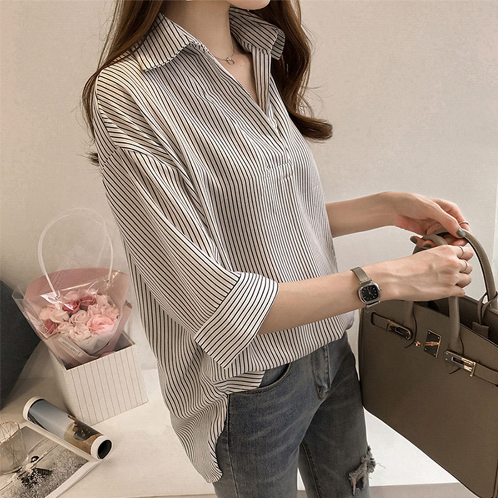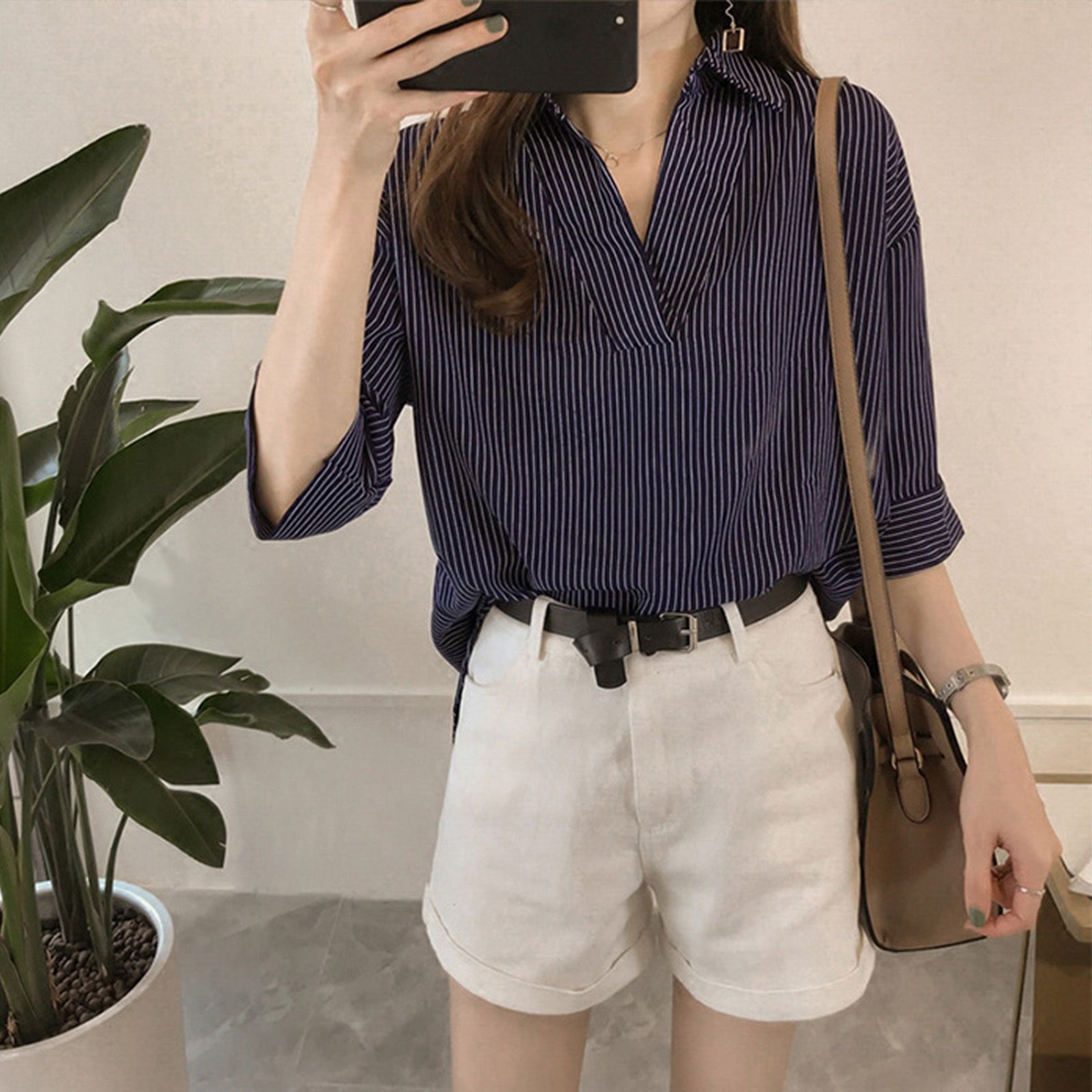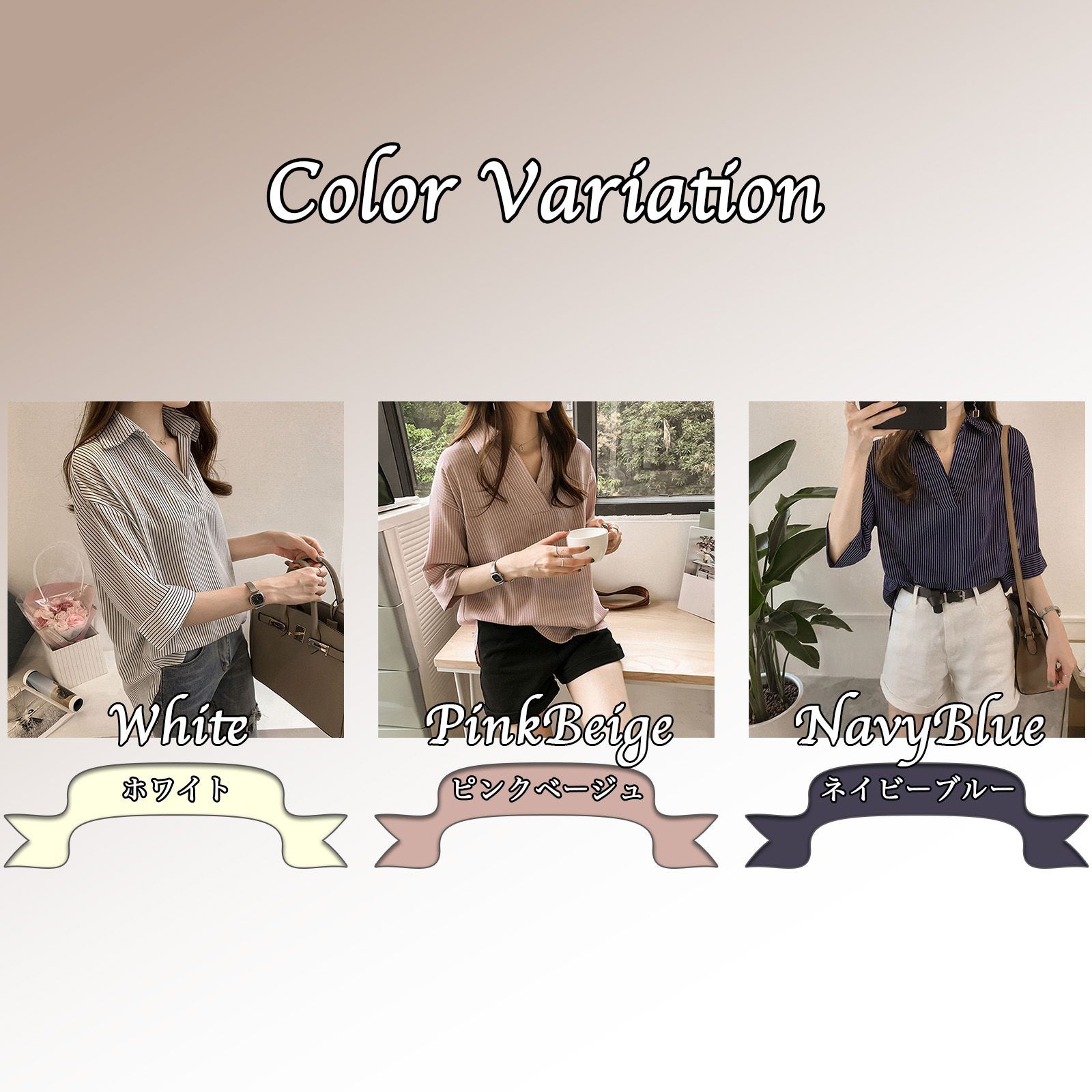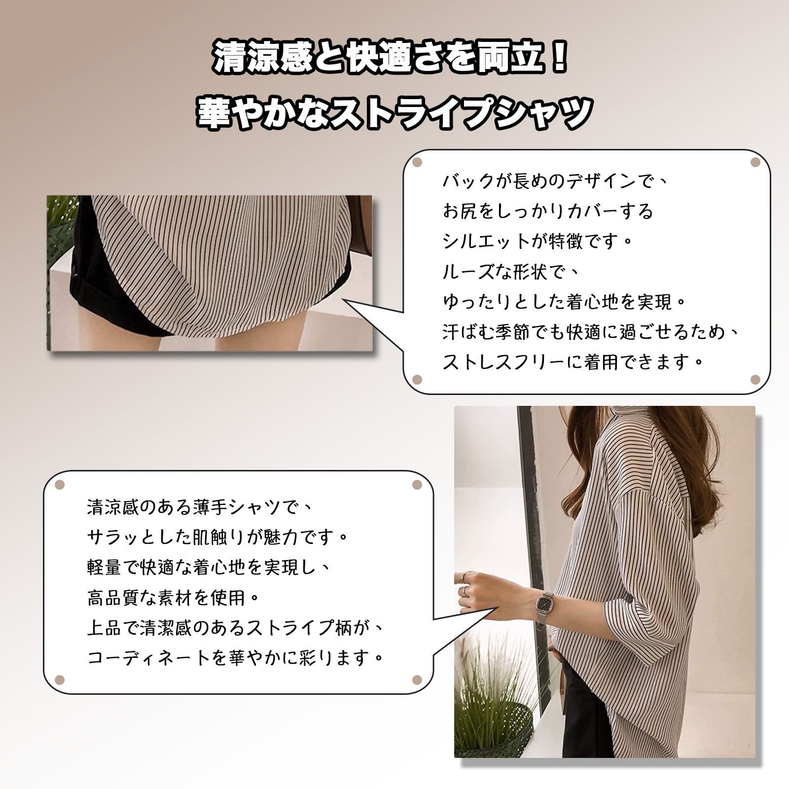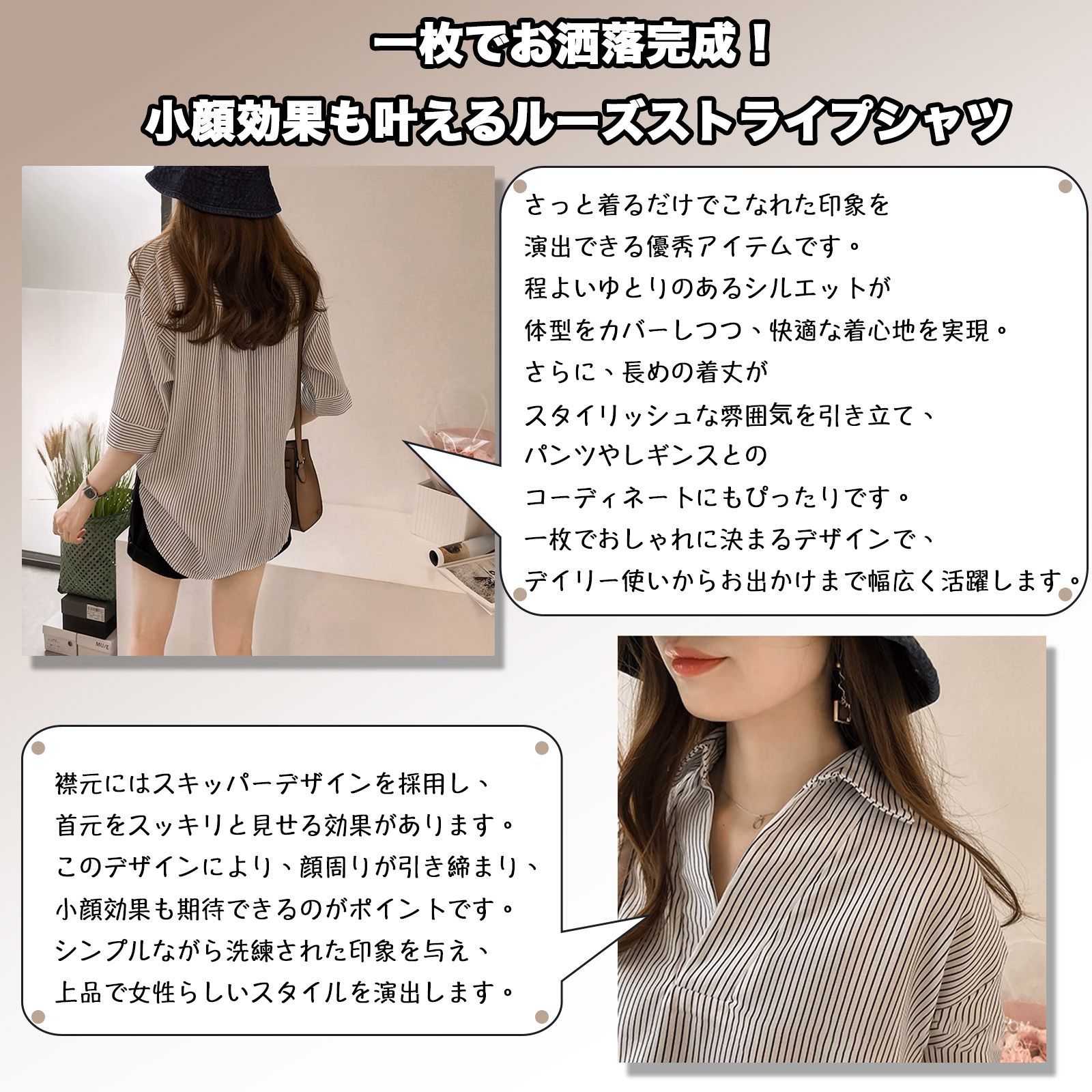 ストライプ シャツ ブラウス 綺麗め レディース 五分袖 七分袖 女性 トップス ルーズシャツ オーバーサイズ 着痩せ ゆったり 軽い 涼しい 大人 抜け感 春 夏 秋 ⚫︎navyblue⚫︎ /全国送料無料/ /在庫少量/ /追跡で安心お届け/】 ♣