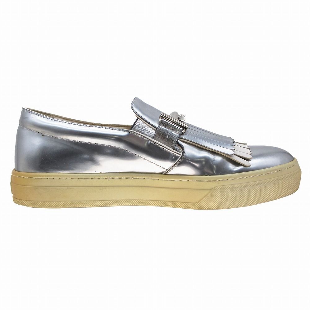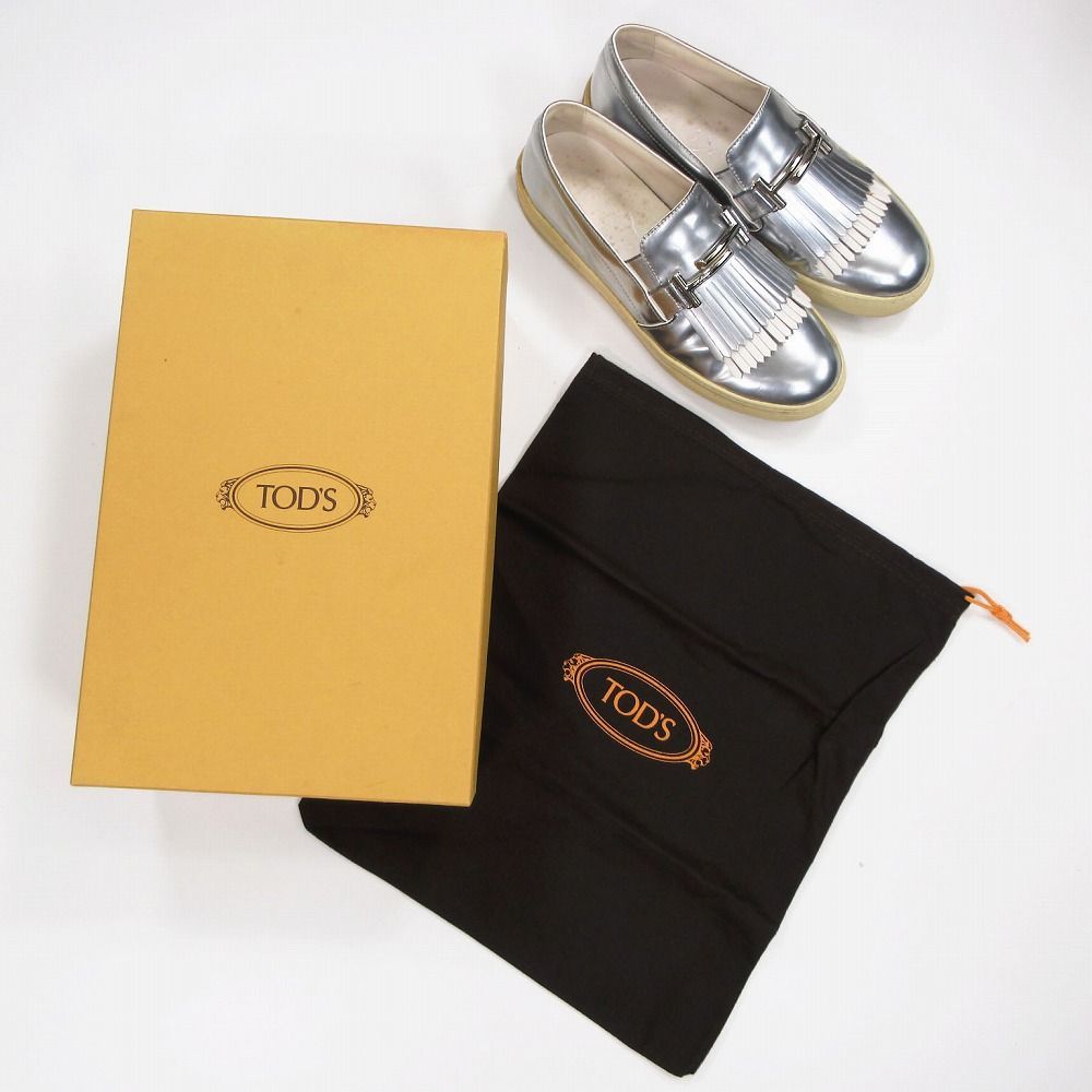 トッズ TODS ダブルT タッセル ローファー スニーカー スリッポン シューズ 靴 38 24.5 シルバー ur129 【中古】