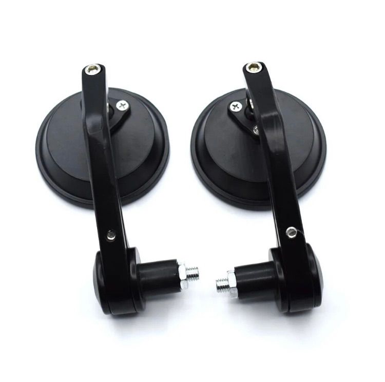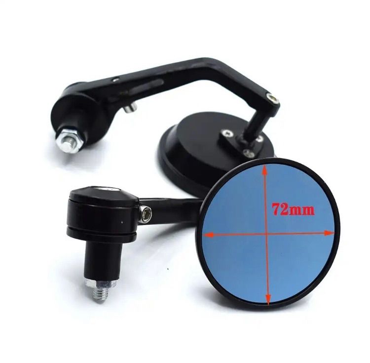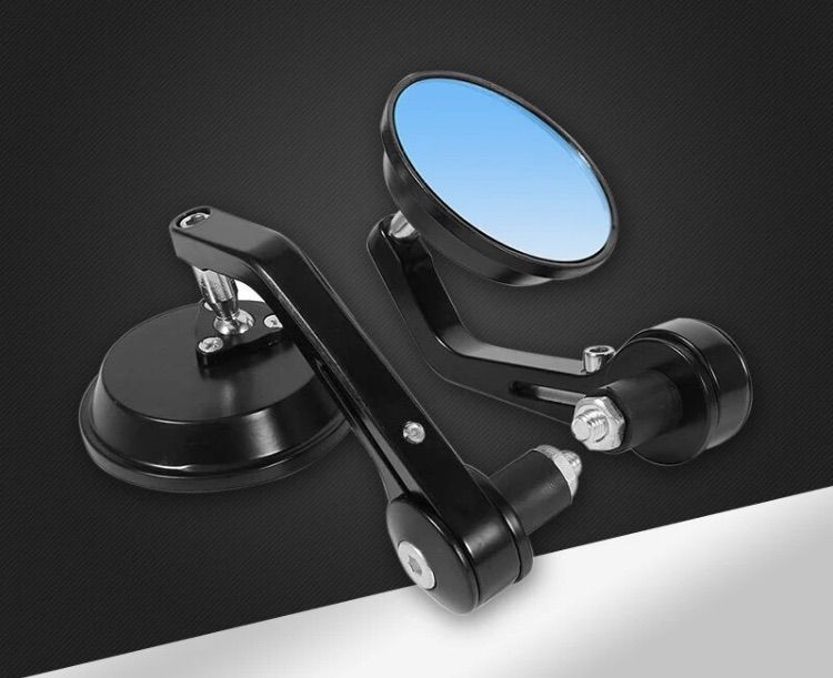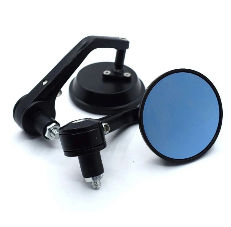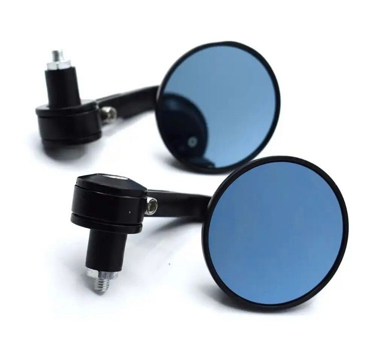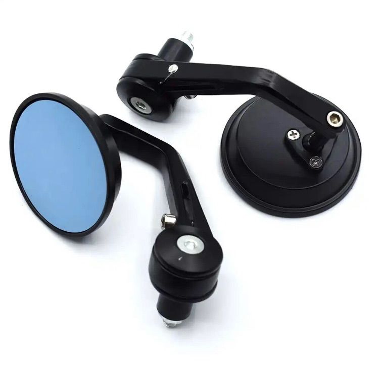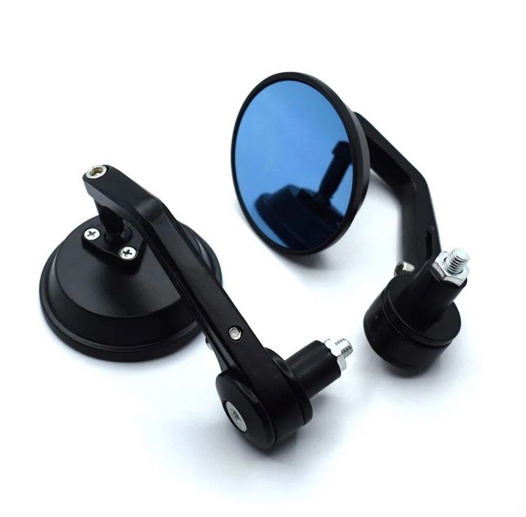 バイク バーエンドミラー 左右セット ブルーレンズ オートバイミラー ミラー 360°角度調整可能 汎用 オーバル 丸形 ブラック