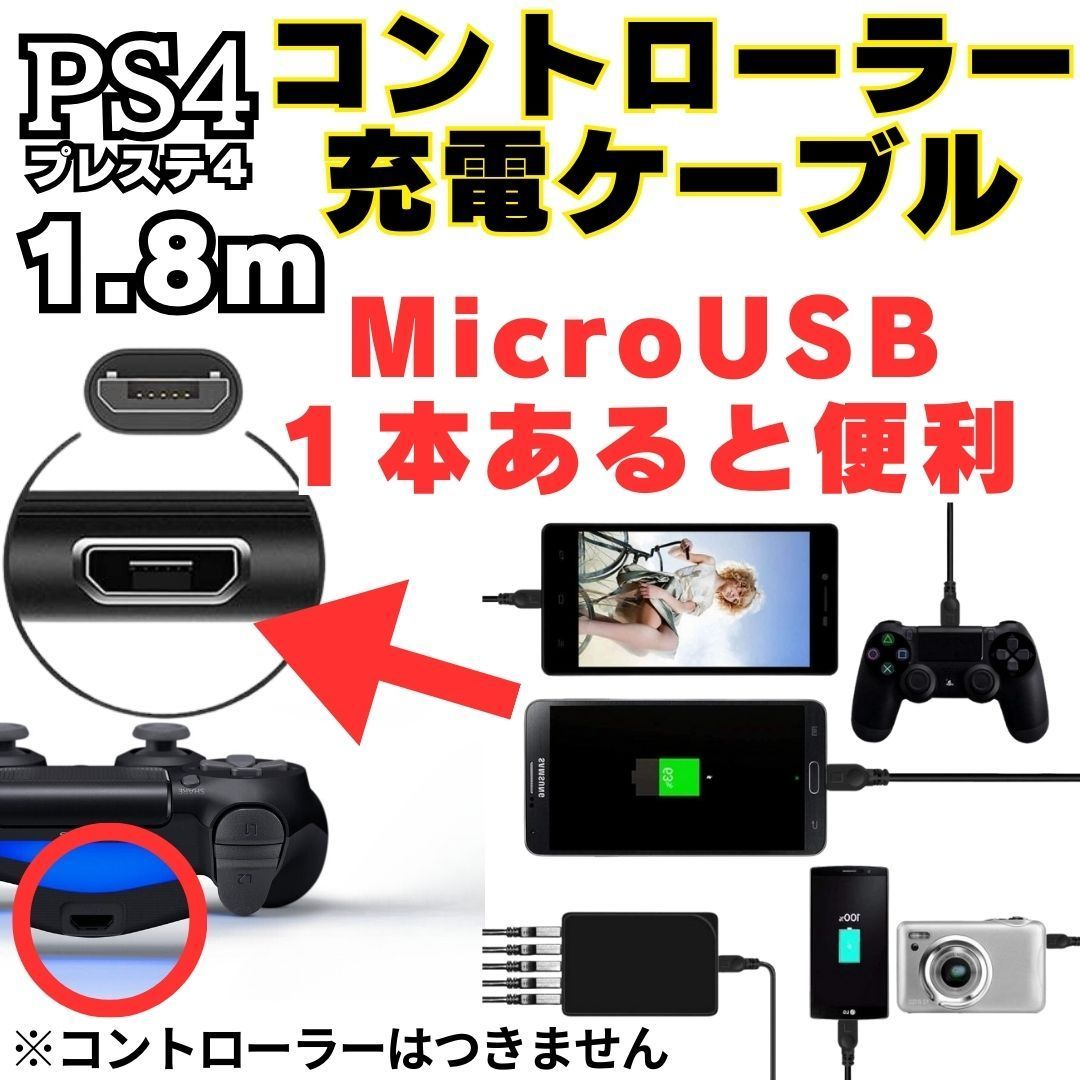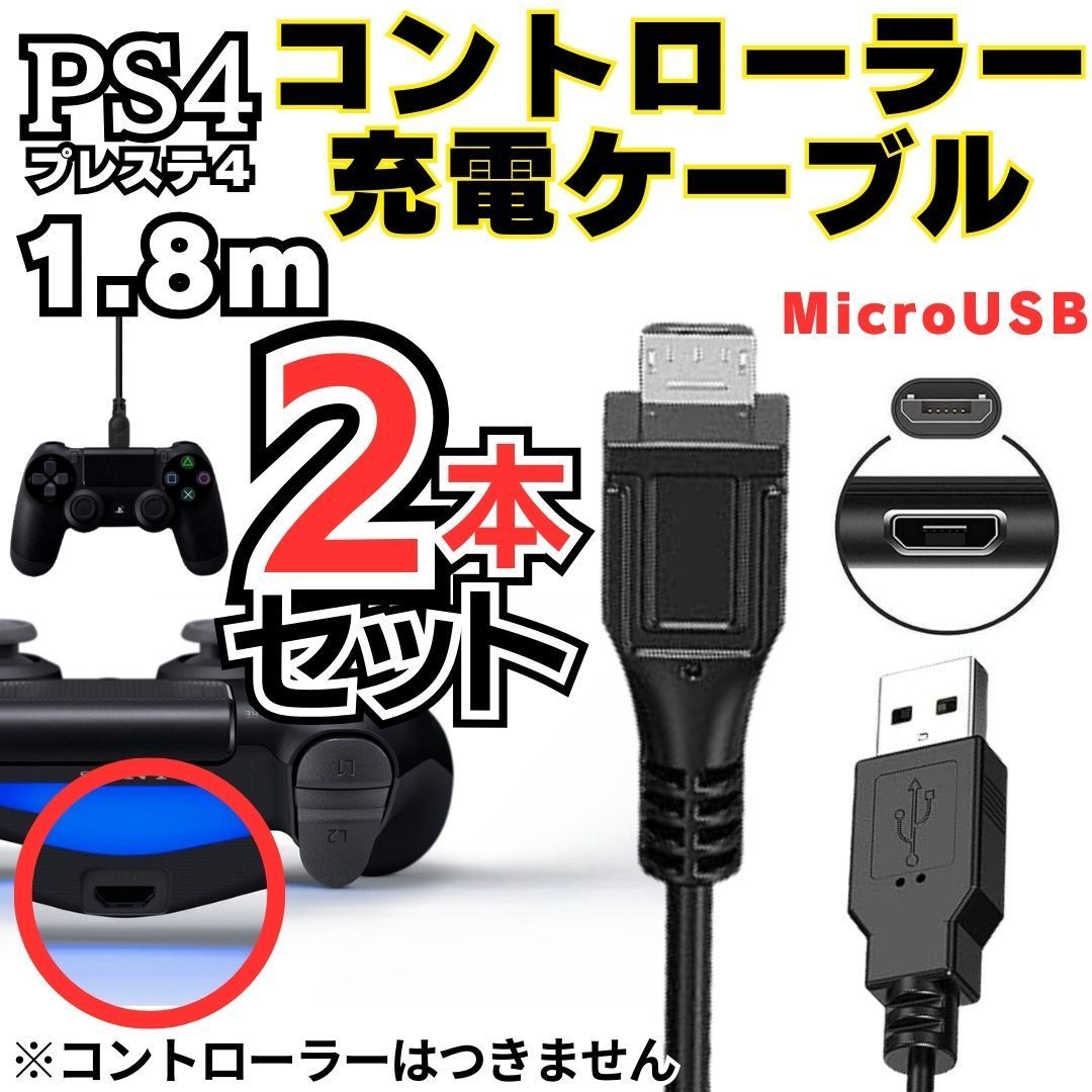 2本セット PS4 コントローラー 用 1.8m MicroUSB 充電ケーブル プレステ 充電コード マイクロUSB PSVITA2000用充電コード XBOX ONE用 充電器 Slim Dualshock 4用充電コード スマホ用 YA-231114