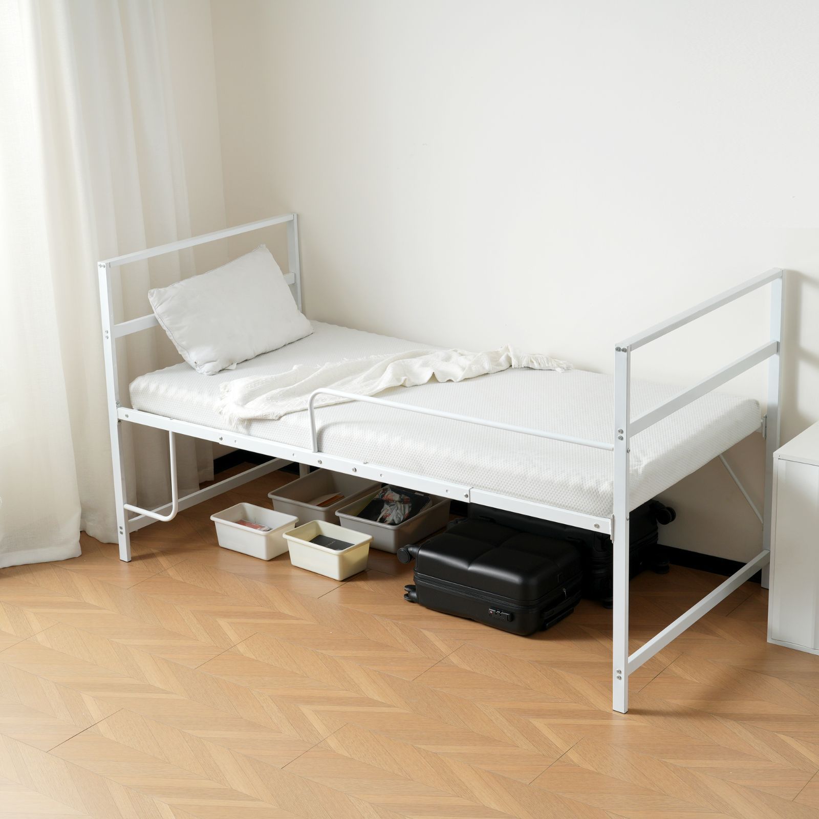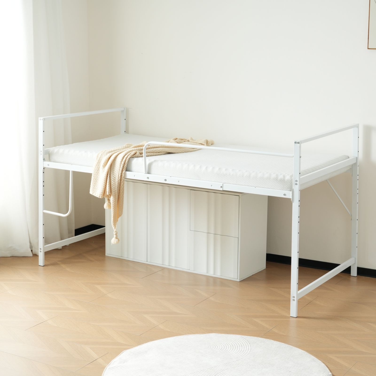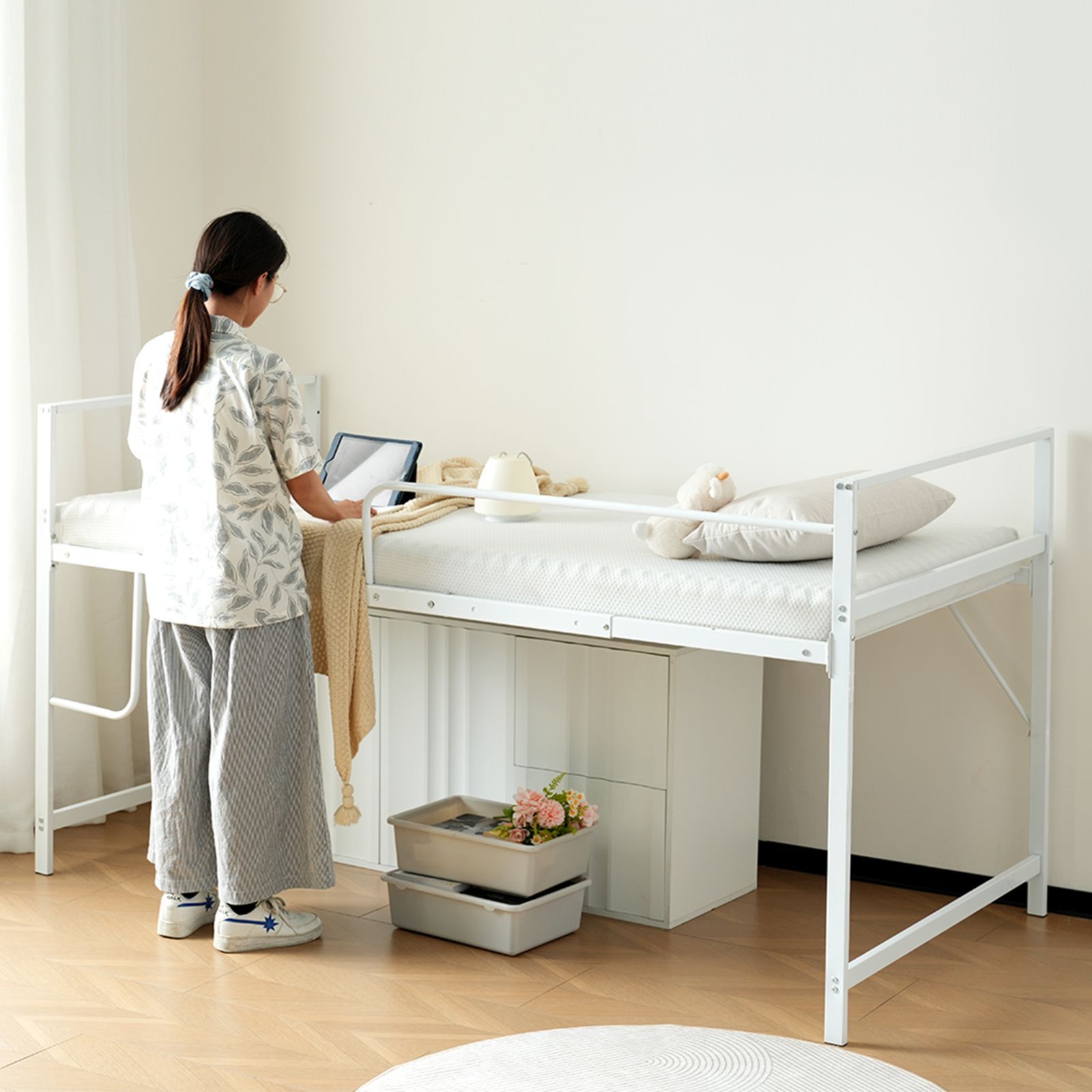 【限定価格x送料無料】NANAMIロフトベッド パイプベッド シングル システムベッド ロータイプ 収納 北欧風 大人 一人暮らし スチール 耐震 ベッド【高さ110cm】WHTIE