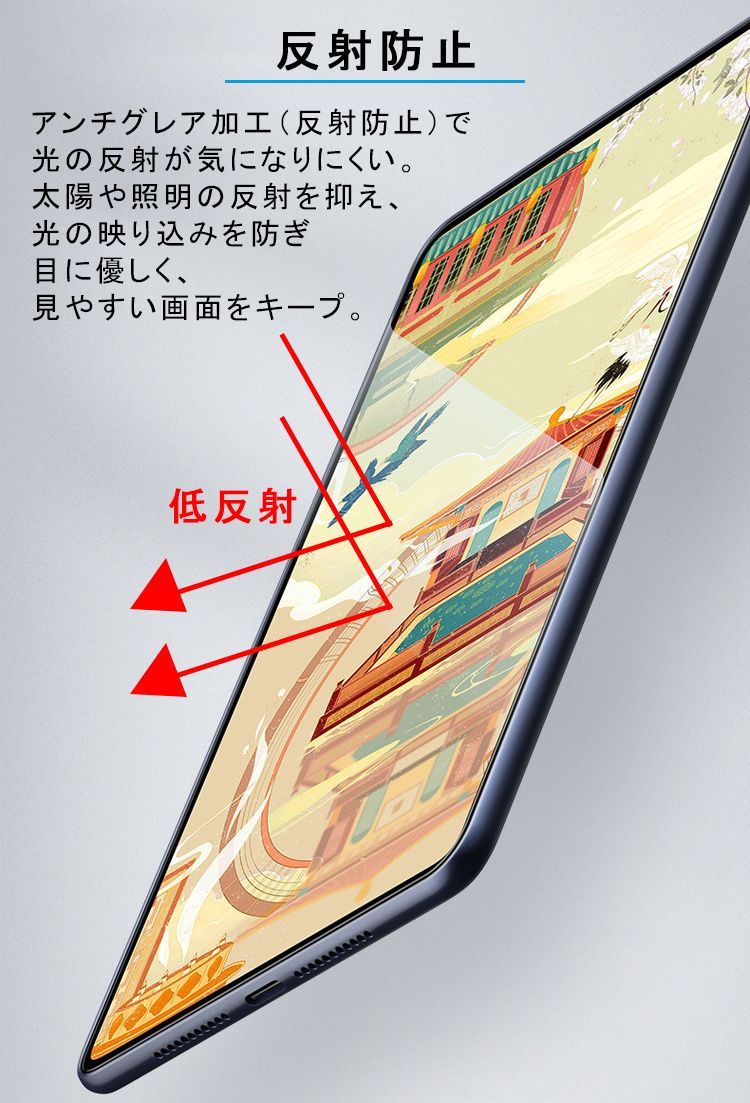 太陽や照明の反射を抑え、光の映り込みを防ぎ目に優しく、見やすい画面をキープ。