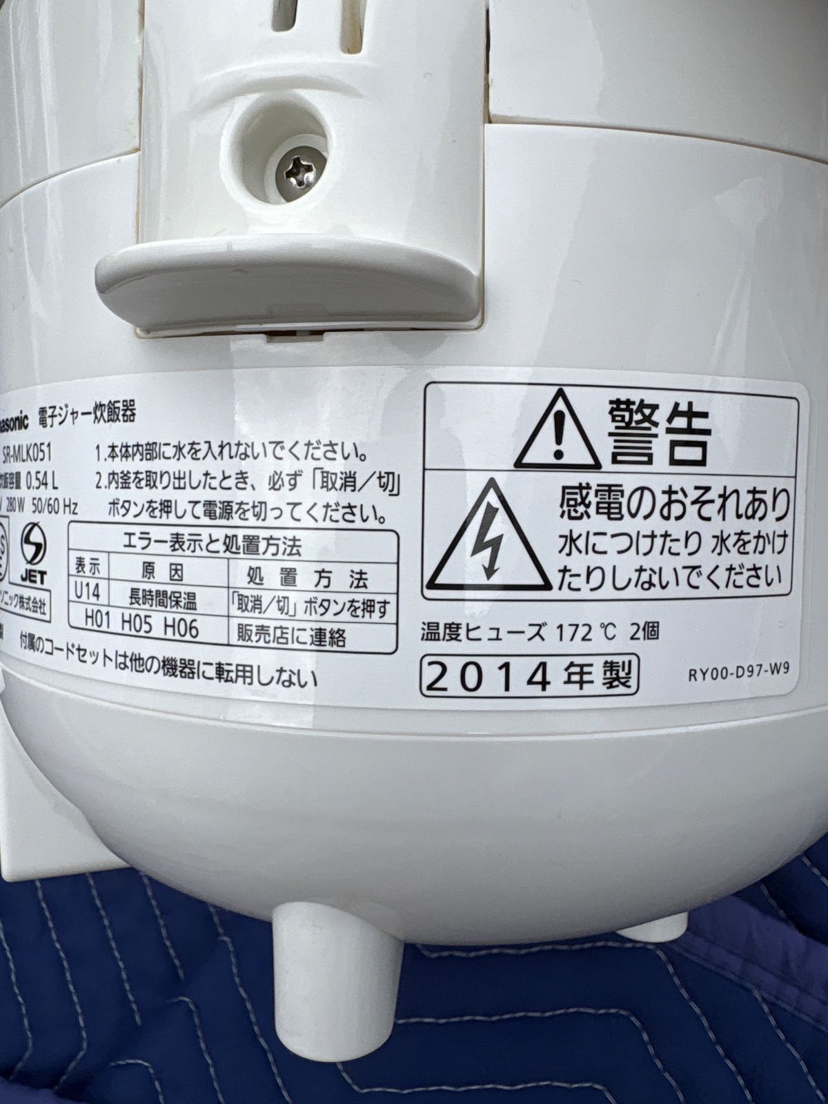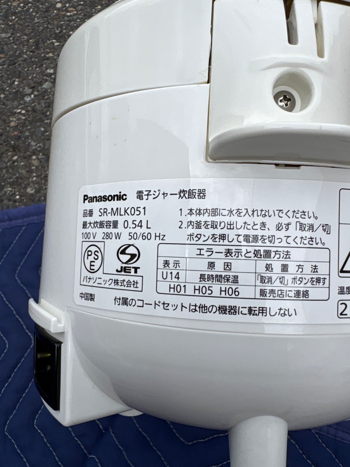 動作確認済み❗️Panasonic 炊飯器 SR-ML051 ホワイト 3合炊き 白 家電 14年製 国内家電メーカー パナソニック パナ