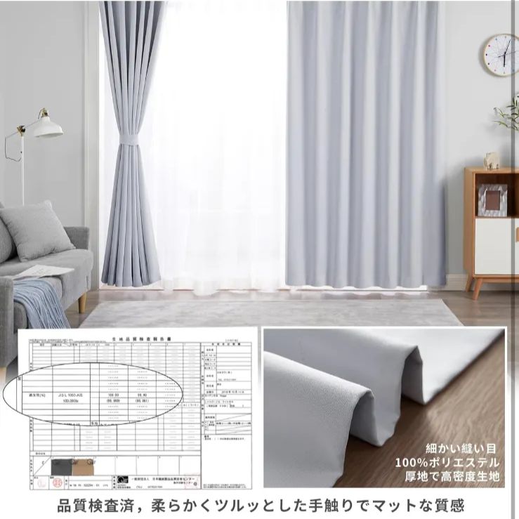 Hansleep カーテン 1級遮光 2枚組 幅100cm丈120cm アイスグレー