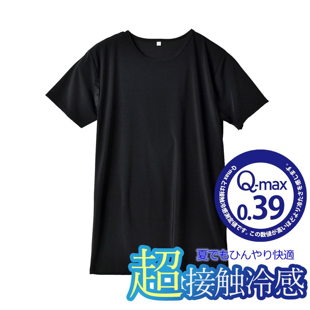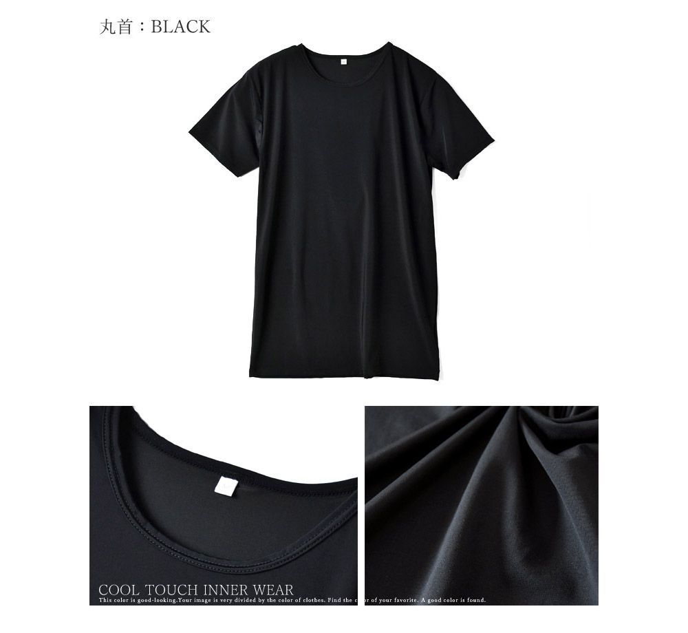 肌着 《丸首:ブラック》 新品 未使用メンズ インナー Tシャツ クルーネック ストレッチ 接触冷感 吸汗速乾 Q-max0.39【A8G】【メール便1】 ファッション