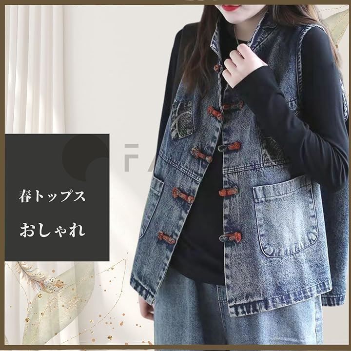 「デザイン」ダメージ加工を施したような雰囲気が漂う、ポケット付きデニムベスト。