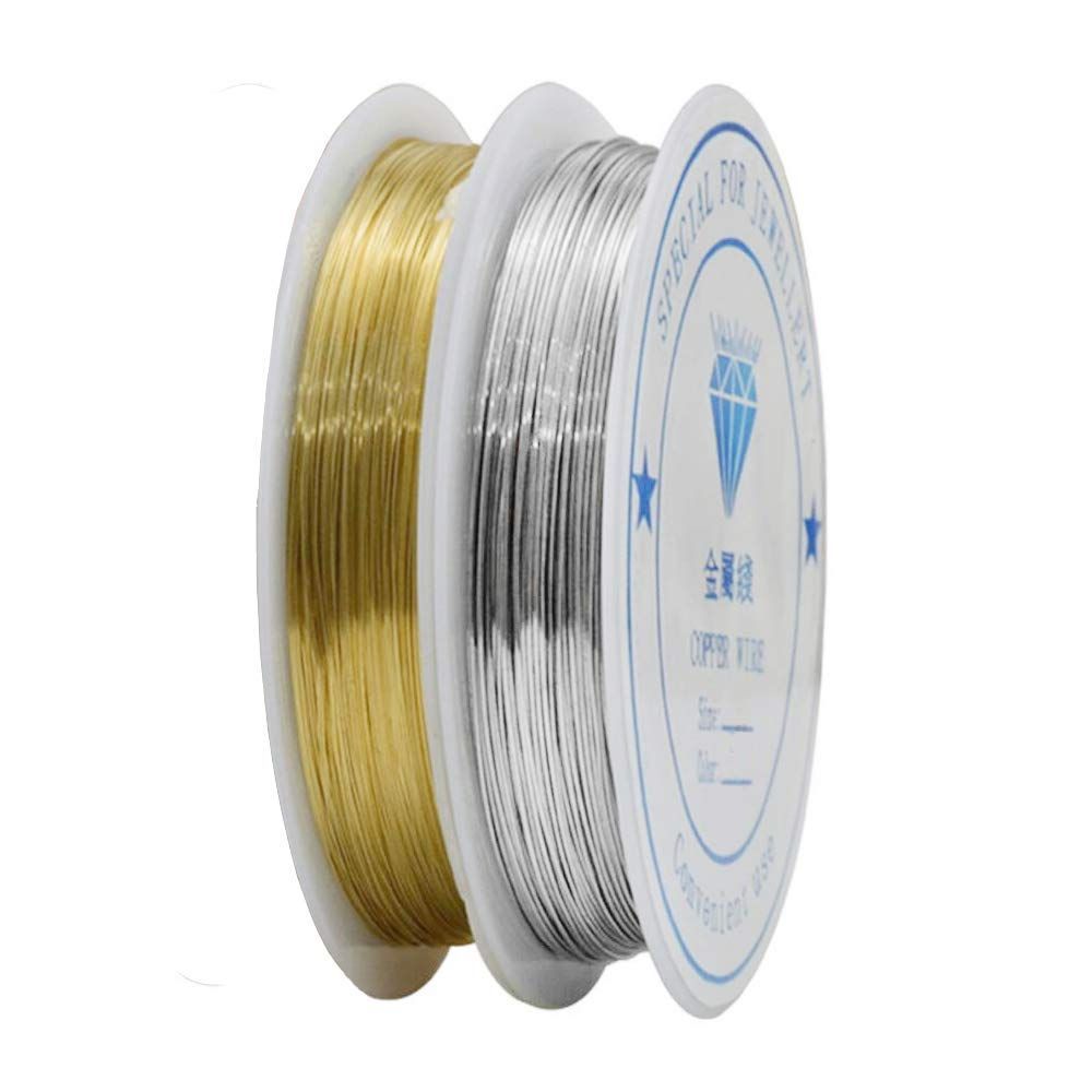 ワイヤー アクセサリーパーツ 銅線 DIY アートワイヤー クラフト銅線 手作り 計60m 手芸用品 2巻入 線径0.3mm シルバー+ゴールド アクセサリーワイヤー