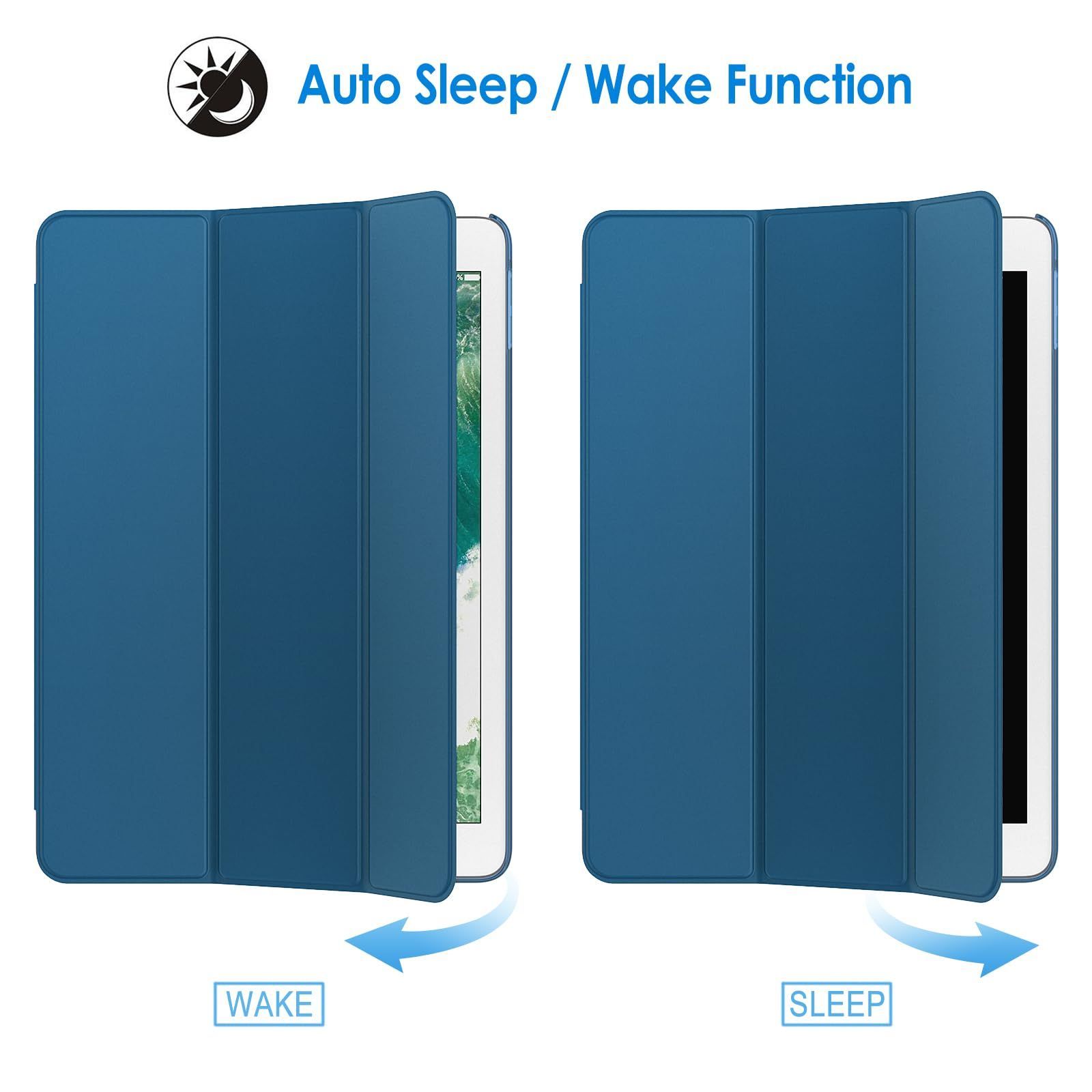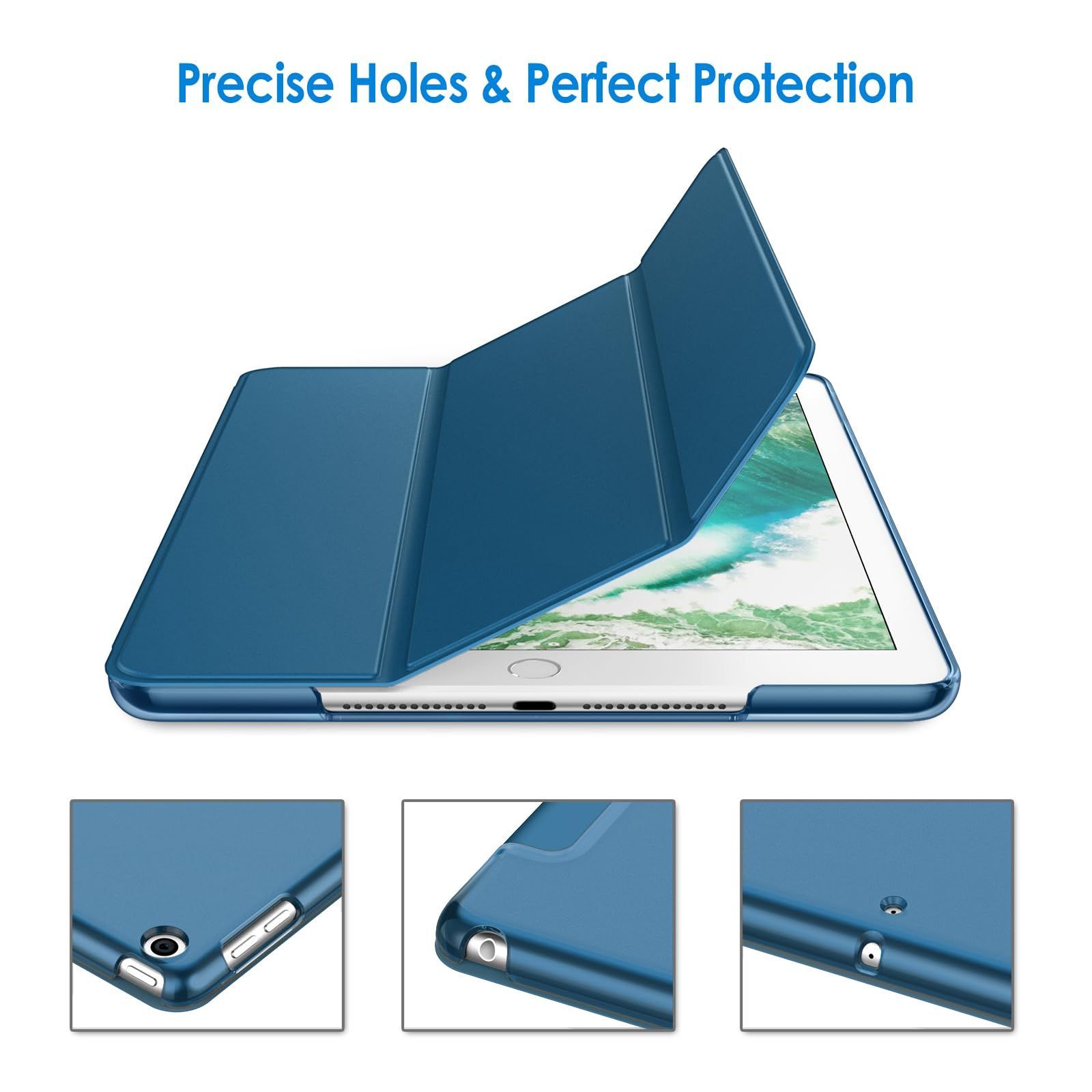 【特売】JEDirect iPad 9.7インチ (2018/2017,第6/5世代用) ケース PUレザー 三つ折スタンド オートスリープ機能 (ティールブルー)