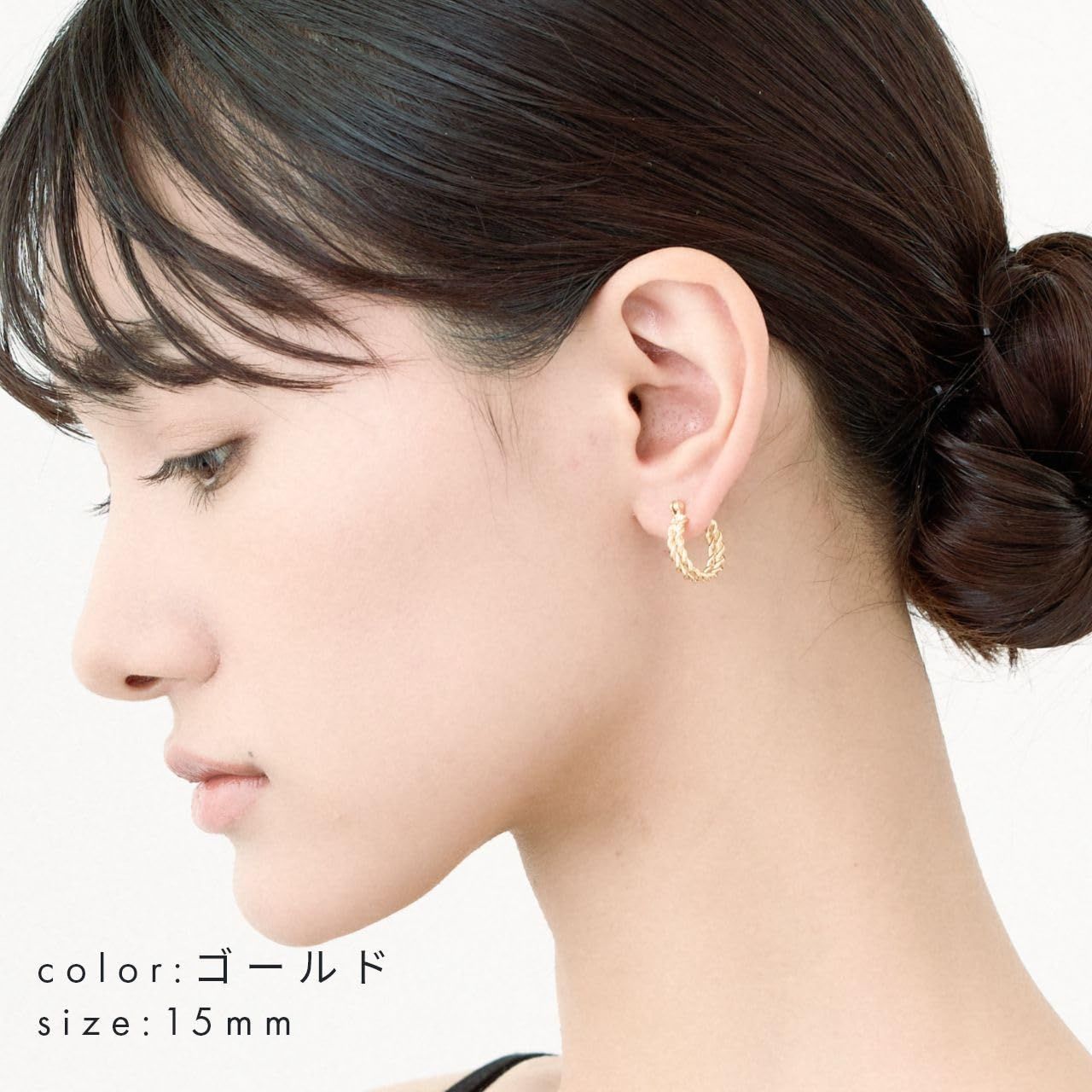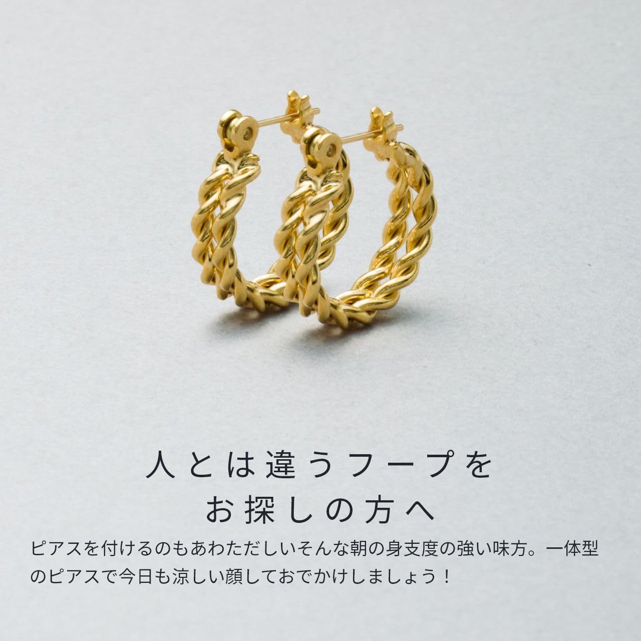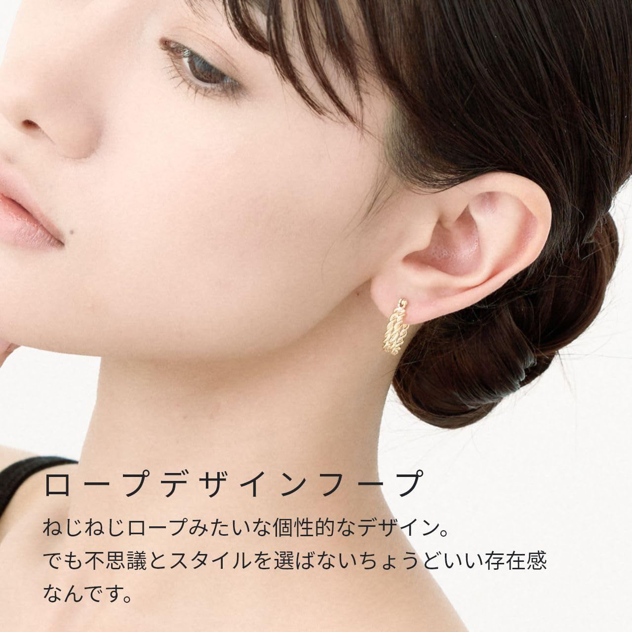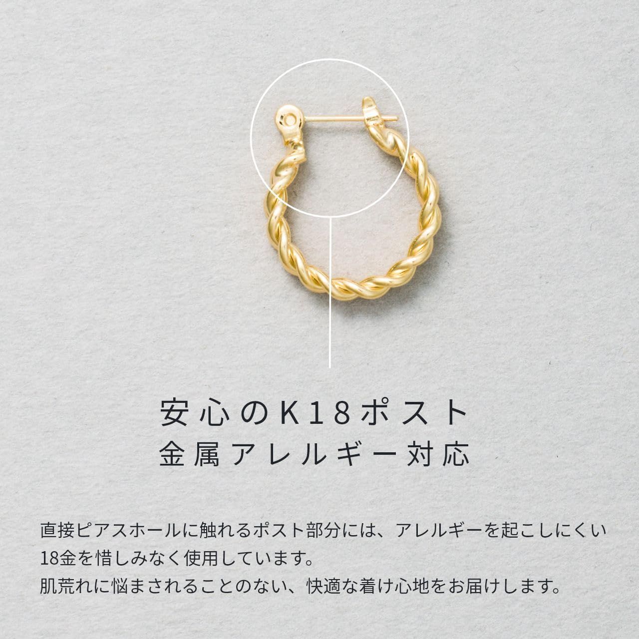 【人気商品】[ヒリーズ] 日本製 18金 ピアス 18K K18 金属アレルギー対応 ねじり デザイン クロッシング キャッチレス ワンタッチ フープ レディース メンズ ピアス 3599 ゴールド