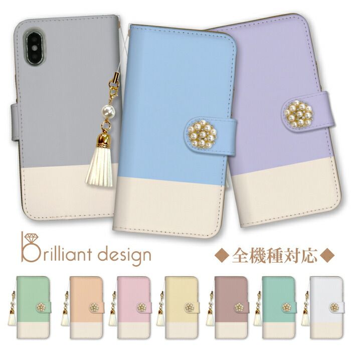 AQUOS zero2 SH-01M SHV47 SH-M13 ケース 手帳型 アクオスゼロ2 スマホケース パール デコ付き ストラップ付 バイカラー 無地 ツートン シンプル かわいい おしゃれ 水色 ピンク パステルカラー カラー09
