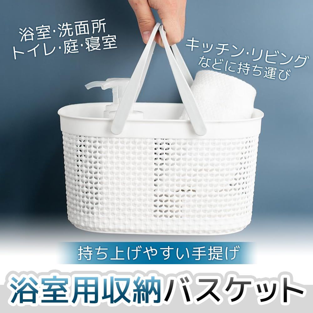 AINetJP Premium 防水バスケット メッシュ仕様 水捌け 取っ手付き 持ち運び バスルーム プール (ホワイト) [ホワイト]