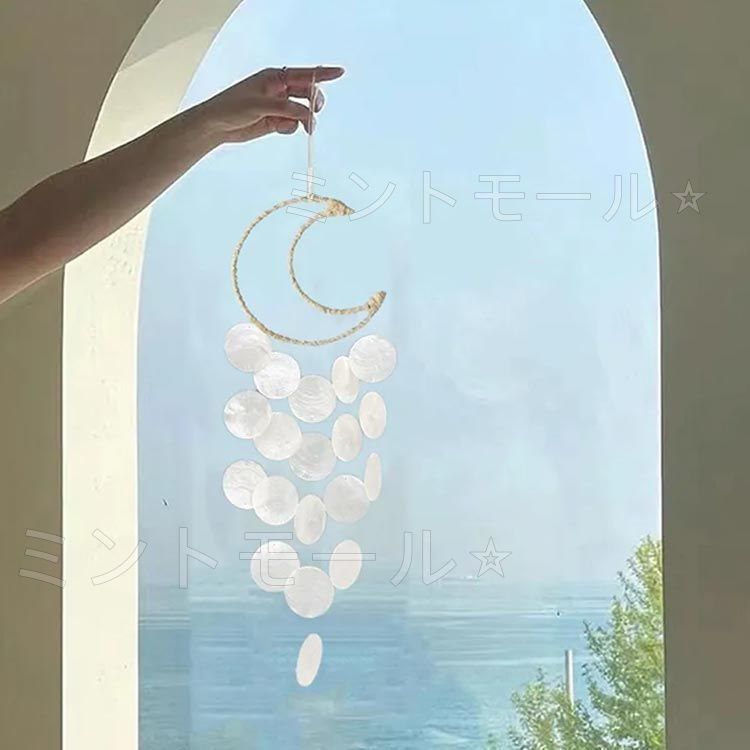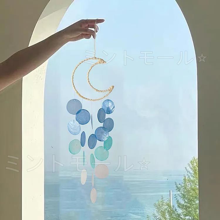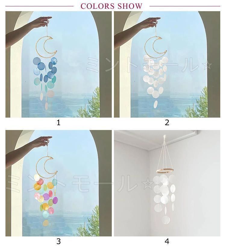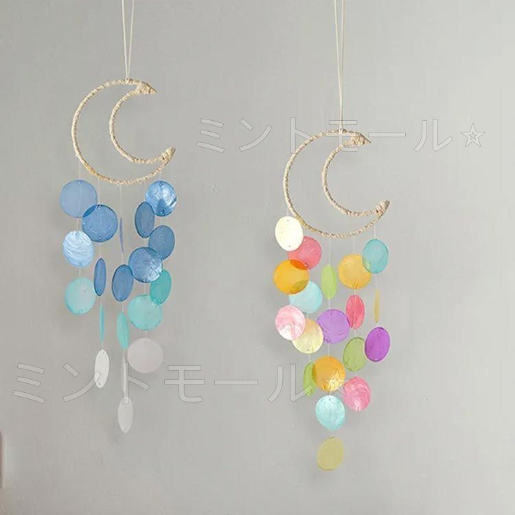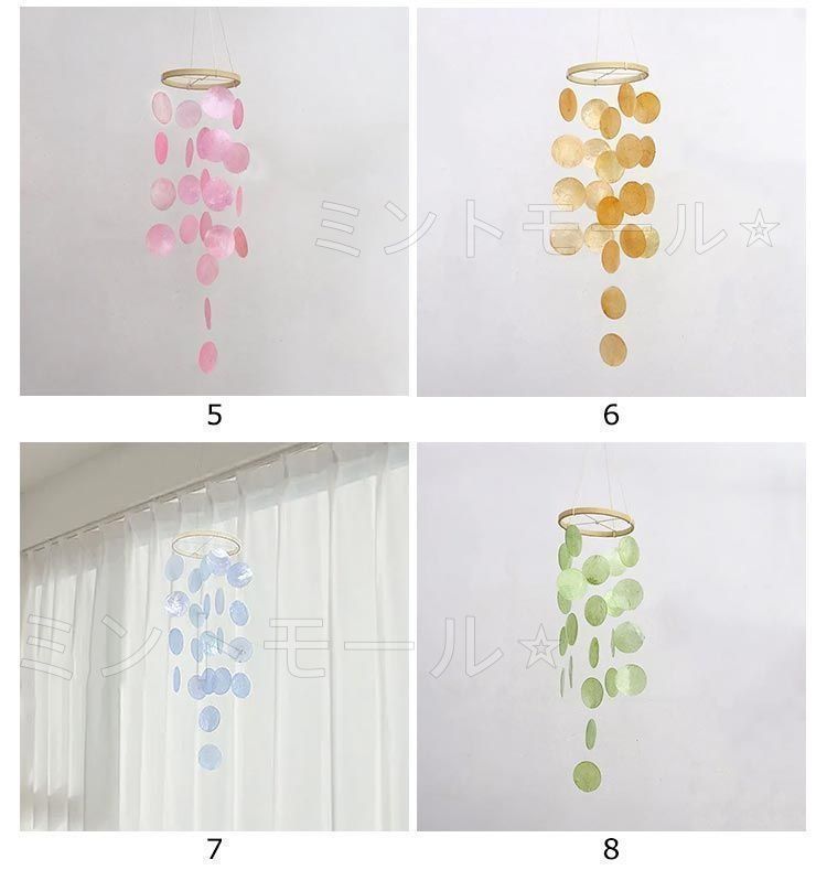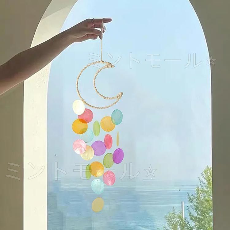 【新品?未使用】 ウインドチャイム 風鈴 ウィンドチャーム 天然貝殻 風鈴 カラフル ドアチャイム カピス貝 シェル 雑貨 吊り下げ インテリ