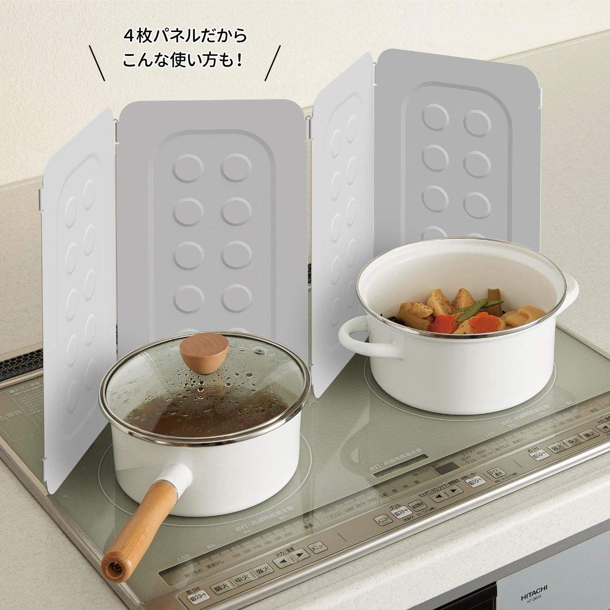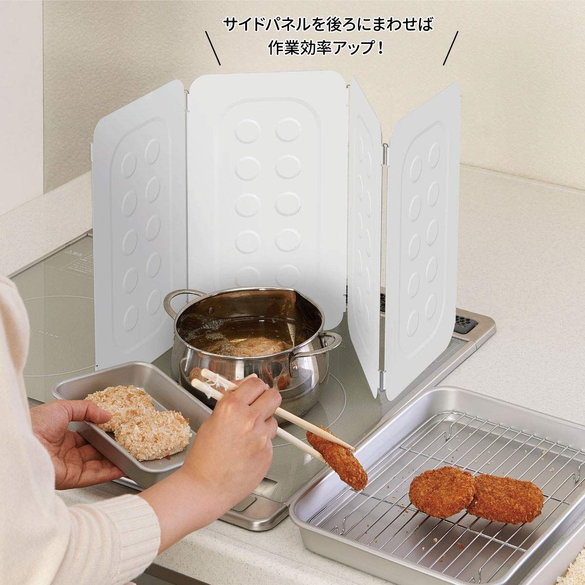 【数量限定】食洗機OK 水洗い 油汚れ ホワイト 幅72.5×奥行0.35×高さ32cm RGC-WHT (まっすぐ広げた時) 4枚パネル コンパクトレンジガード お手入れ簡単! ベラスコート 油はねガード 水洗いだけで落ちる! 日本製 Belca(ベルカ)