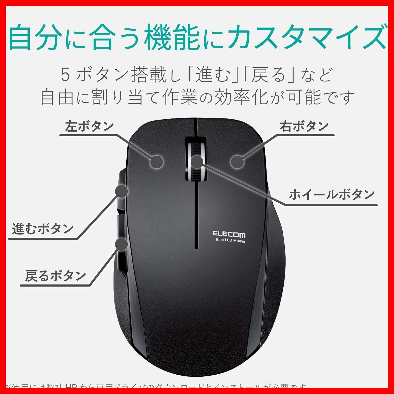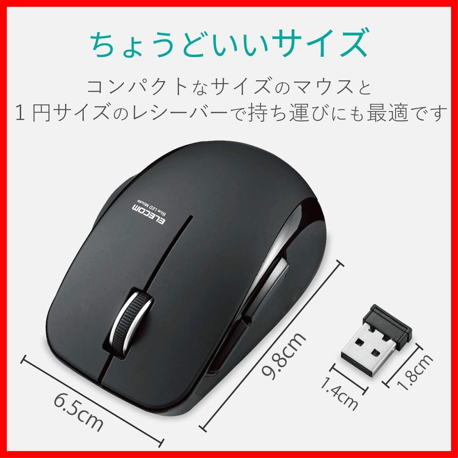 エレコム マウス ワイヤレス (レシーバー付属) Mサイズ 5ボタン (戻る・進むボタン搭載) 静音 ブラック M-FBL01DBXSBK