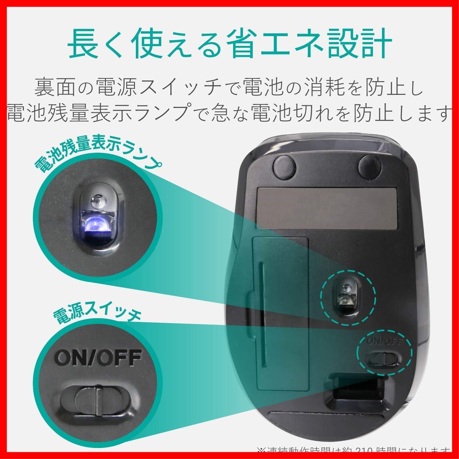 ■ 左右ボタンとホイールボタンに加え、「進む」、「戻る」を含めた5ボタンにサイレントスイッチを採用し、しっかりとした押し心地がありながらクリックのカチカチ音が気にならず、静かに使用できるワイヤレスマウスです。