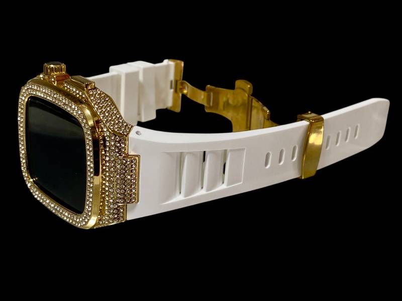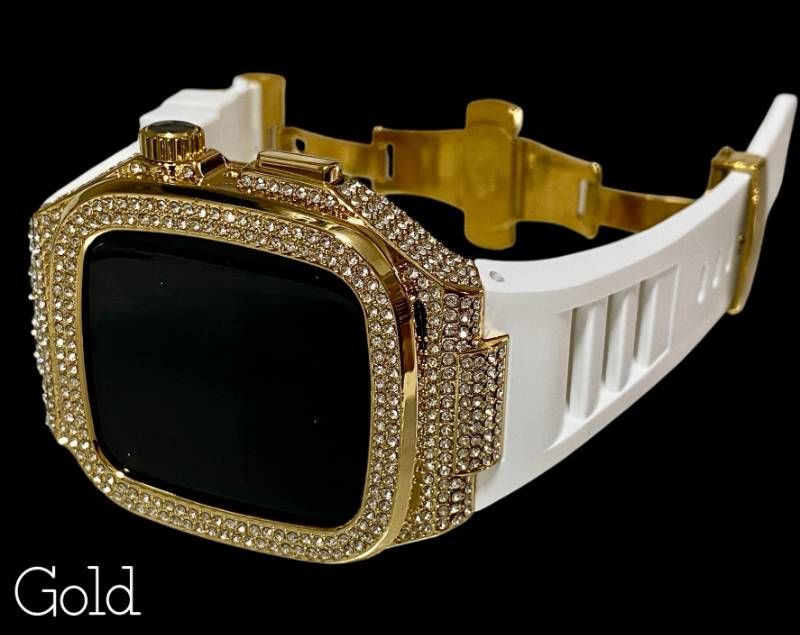 アップルウォッチケース 互換性対応 カスタム カバー 保護 ギフト 44 42 45 46 キラキラ ベルト Apple Watch バンド セット series4/5/6/7/8/9/10/11 ホワイトゴールド1