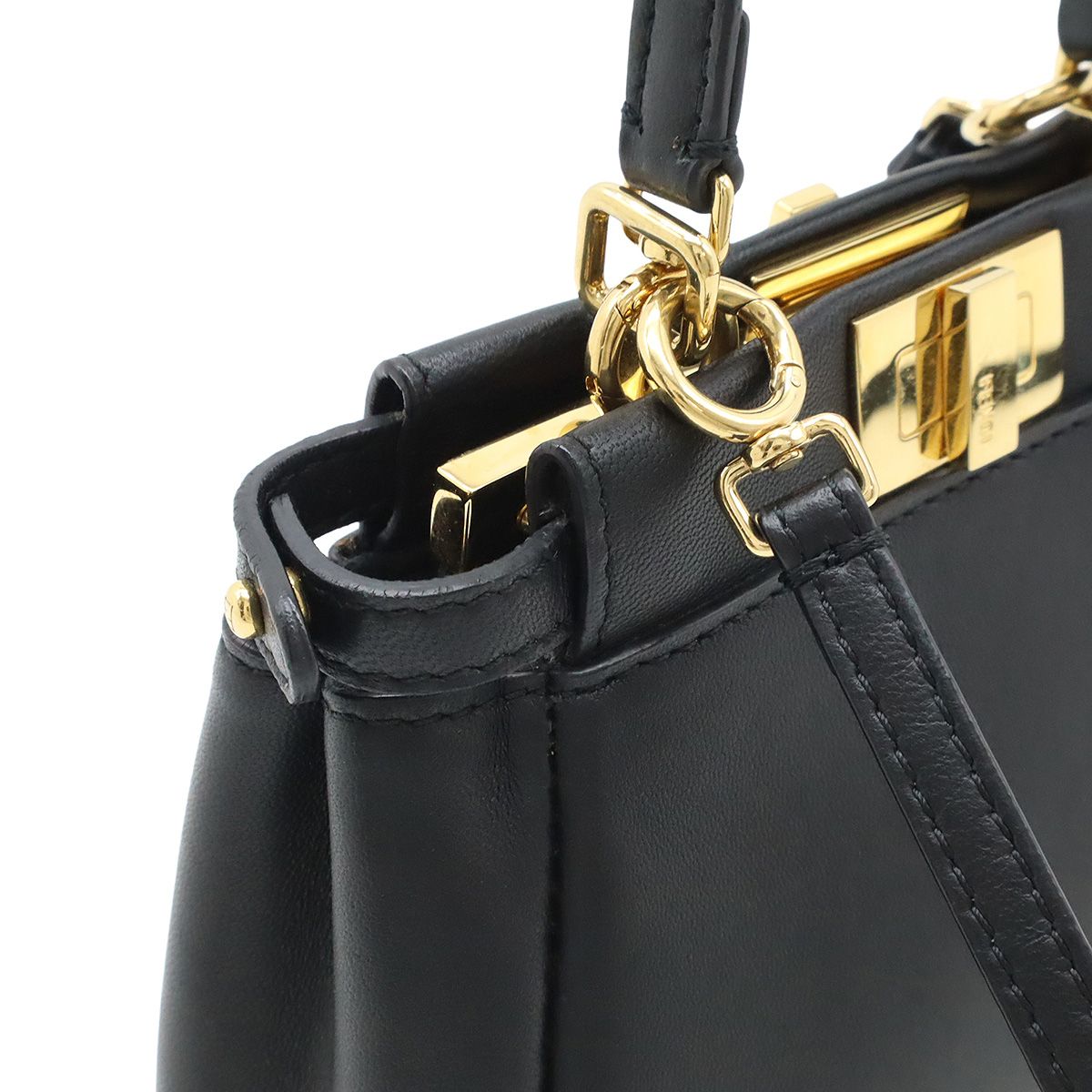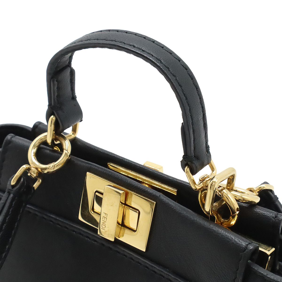 FENDI フェンディ マイクロ ピーカブー ハンドバッグ ミニバッグ 2WAY ショルダーバッグ レザー ブラック 黒 ゴールド金具 8M0355