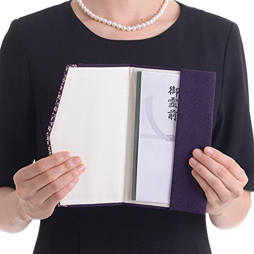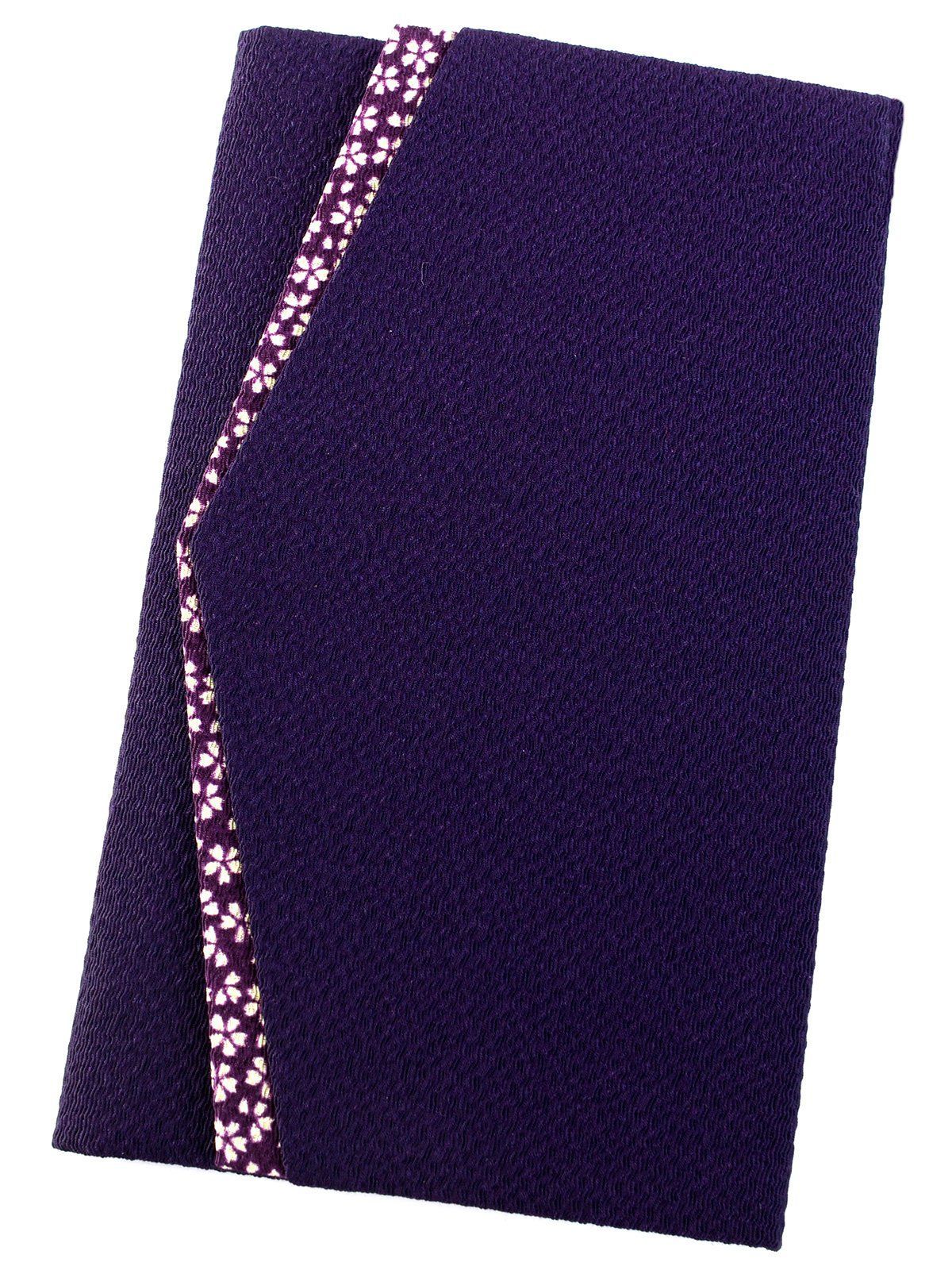 小花ちりめん金封 ふくさ 袱紗 日本製 ムラサキ センター折 冠婚葬祭 慶弔両用 結婚式