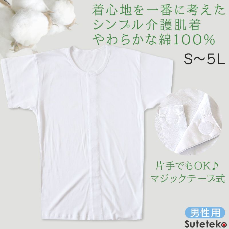 『紳士 前開き ワンタッチ 半袖シャツ(マジックテープ式)』です。