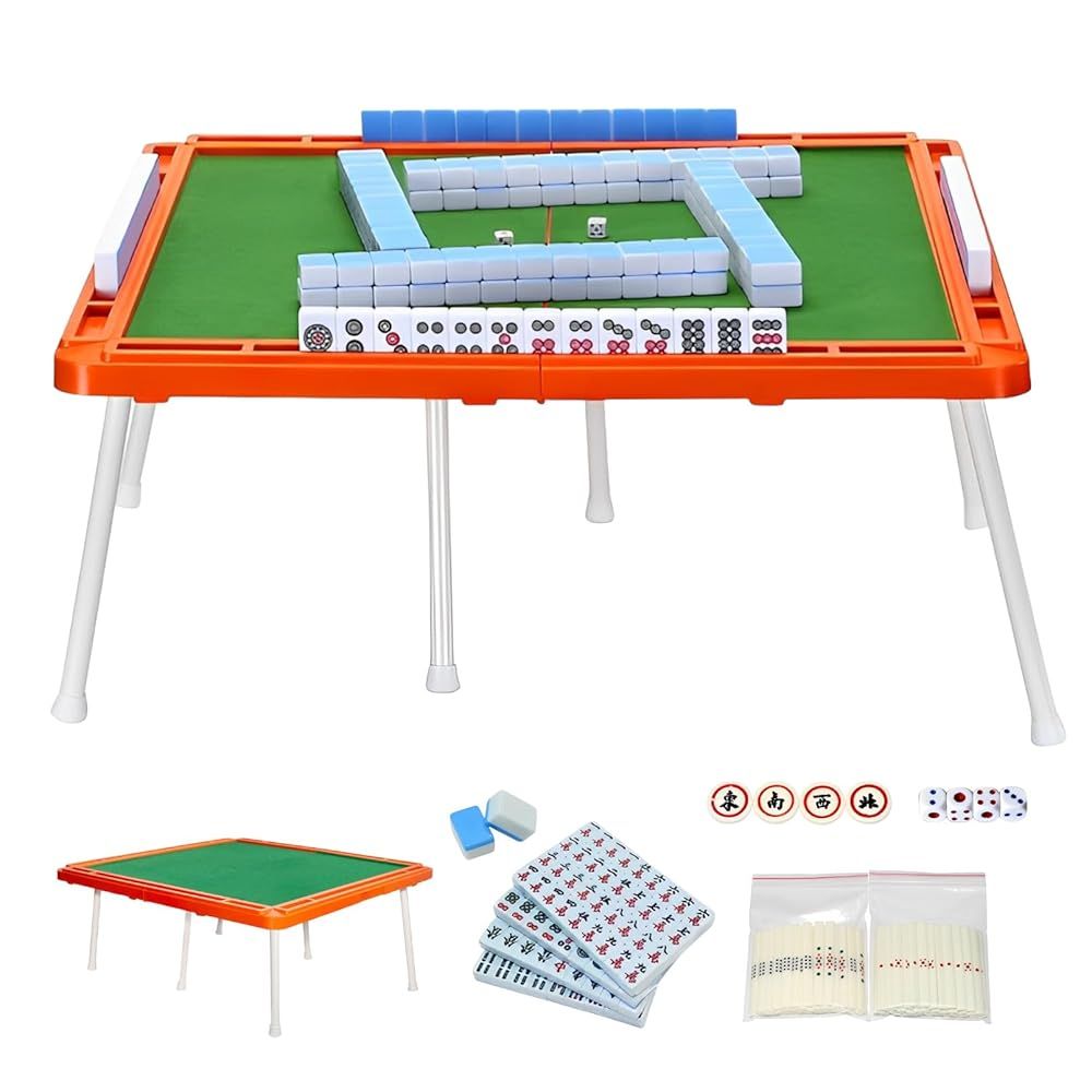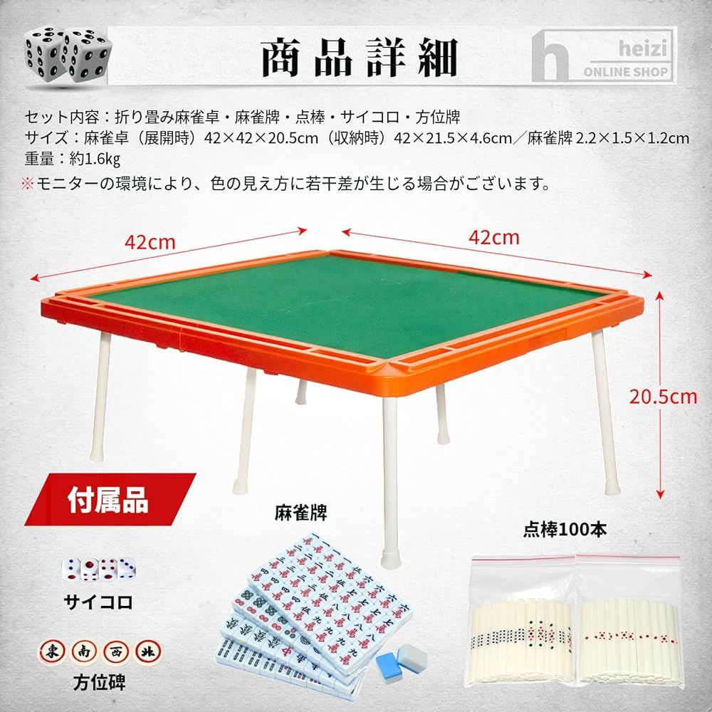 heizi 麻雀セット 麻雀卓 折りたたみ コンパクト 持ち運び 脚付き サイコロ 点棒 付き 雀卓 フルセット (麻雀牌 ブルー)