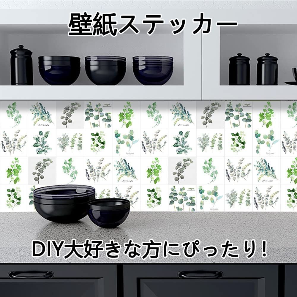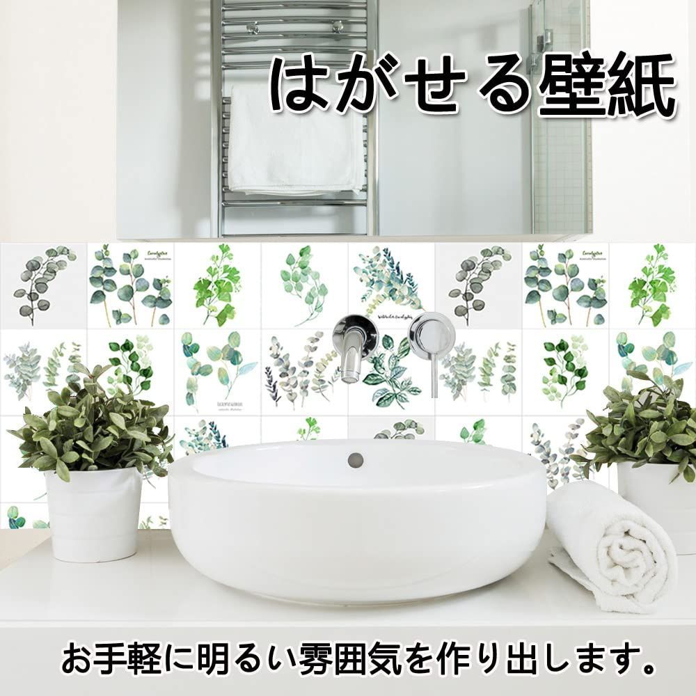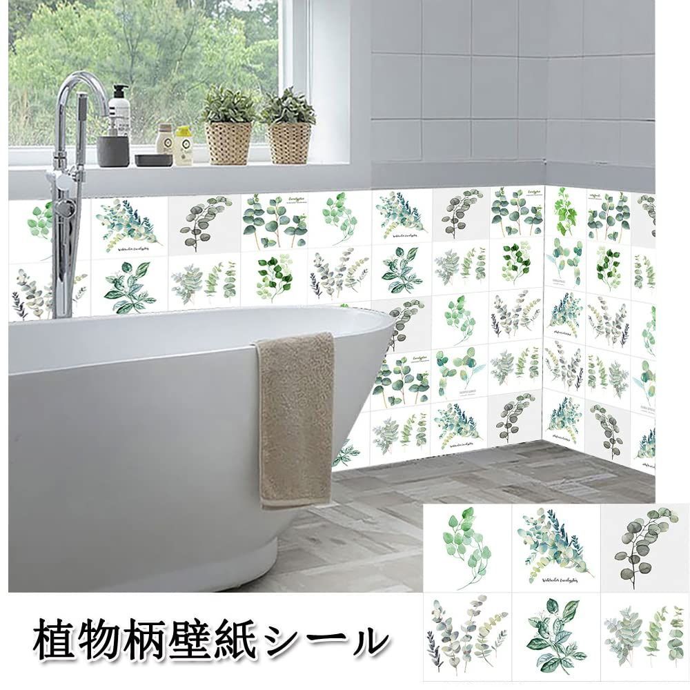 【在庫処分】自分粘着 防汚性にも優れ DIY 防水 ウォールステッカー 断熱 PVC製 トイレ 緑の葉 洗面所 植物柄 キッチン 北欧 可愛い 模様替え 20枚セット タイル補修 防水シール 賃貸でも安心 剥がせるリメイクシート 壁紙シール 10cm*10cm