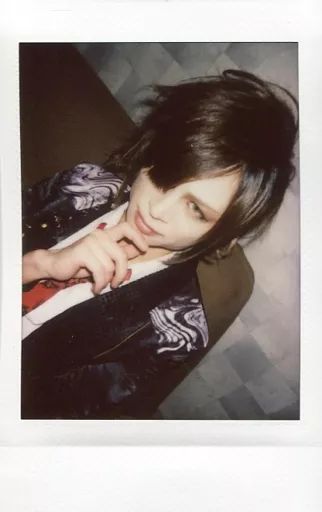 【中古】生写真(男性) ASTARIA/コーヤ/バストアップ・衣装黒・白・ネクタイ赤・右手顎・ソファ茶・アングル斜め/生チェキ