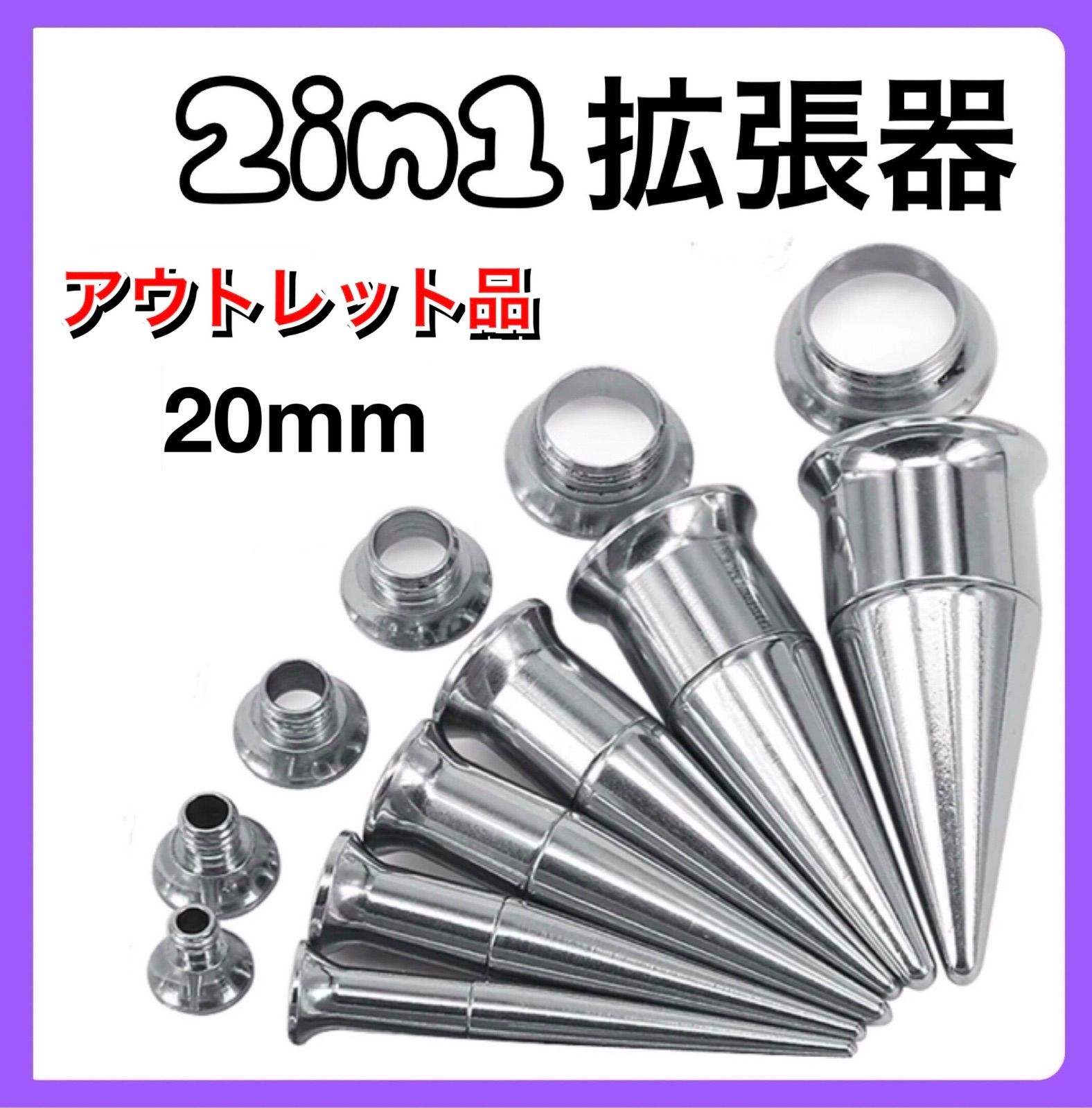 2in1 ピアス 拡張器 ダブルフレア シルバー 20mm アウトレット品 B級品 傷あり