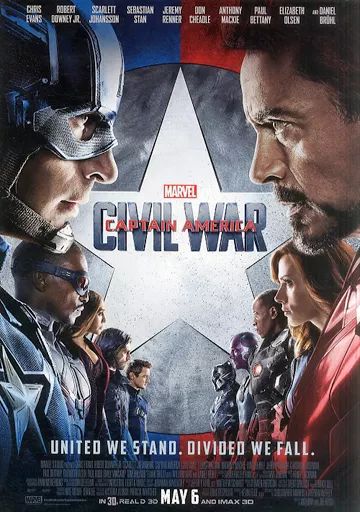 製作総指揮:スタン・リー 監督:アンソニー・ルッソ/ジョー・ルッソ 脚本:クリストファー・マルクス/スティーヴン・マクフィーリー 撮影監督:トレント・オパロック 音楽:ヘンリー・ジャックマン 出演:クリス・エヴァンス/ロバート・ダウニーJr./スカーレット・ヨハンソン/セバスチャン・スタン/ポール・ラッド/トム・ホランド/アンソニー・マッキー/ドン・チードル/ジェレミー・レナー/チャドウィック・ボーズマン/ポール・ベタニー/エリザベス・オルセン/エミリー・ヴァンキャンプ/フランク・グリロ/ウィリアム・ハート/マーティン・フリーマン/ダニエル・ブリュール 声の出演:米倉涼子/宮迫博之/溝端淳平/中村悠一/藤原啓治/白石充/目黒光祐/田村真/加瀬康之/行成とあ/木内秀信/御沓優子/榎木淳弥/水内清光/菅生隆之/森川智之/内田夕夜