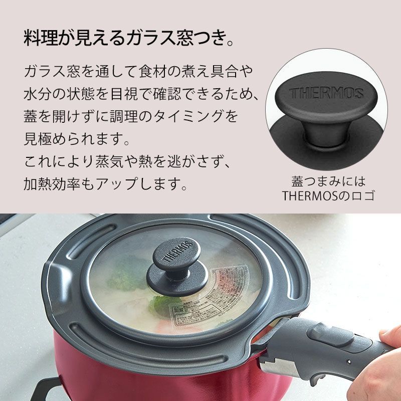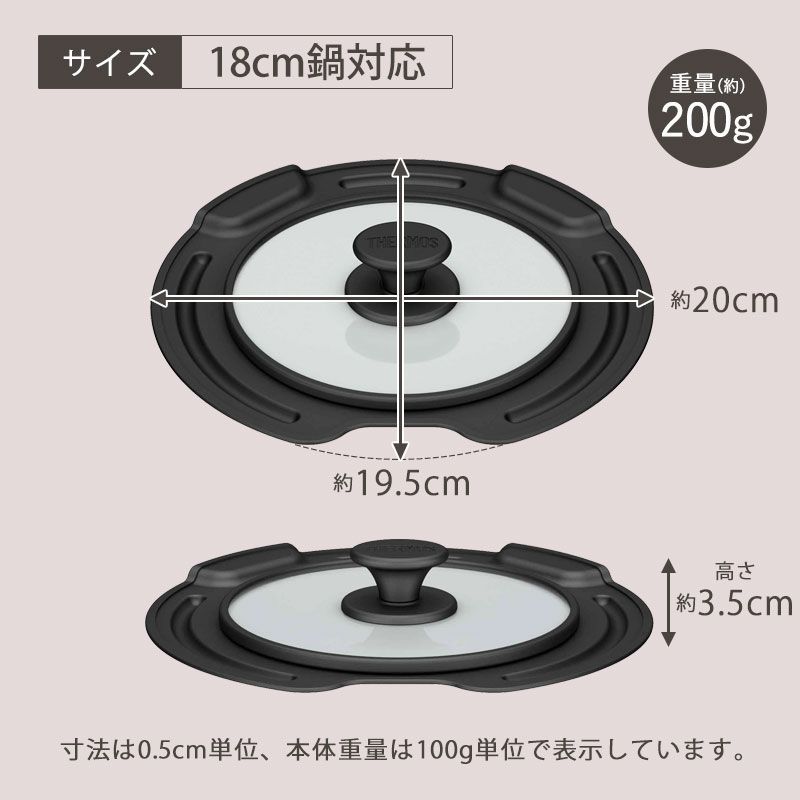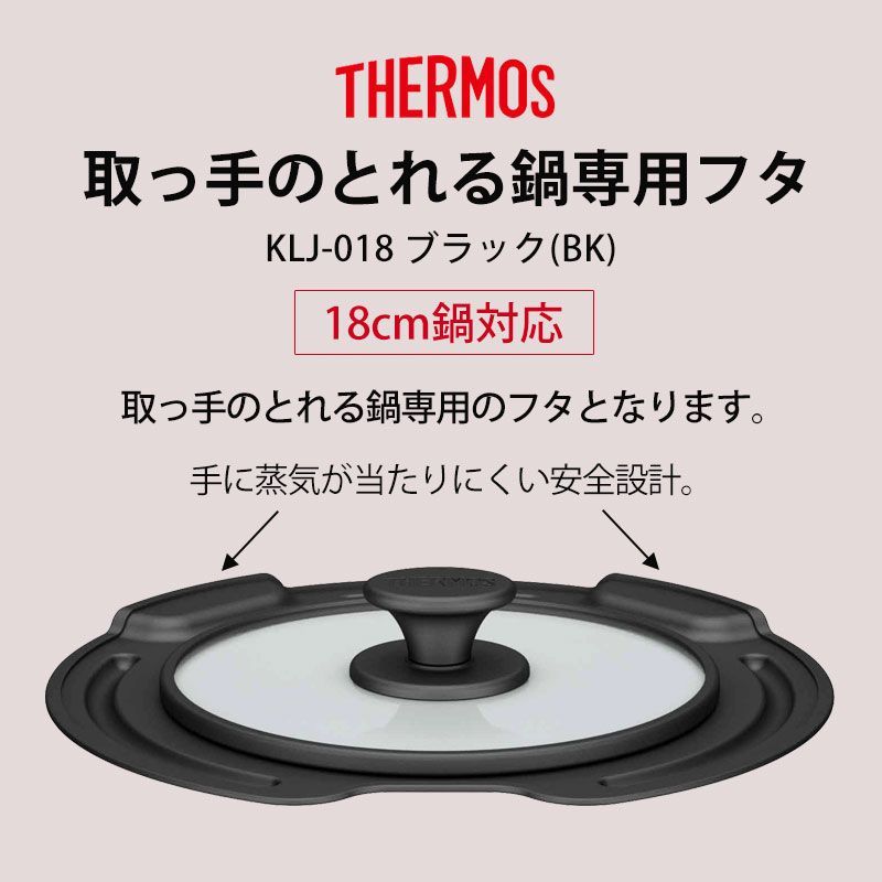 THERMOS サーモス 取っ手のとれる鍋専用 蓋 18cm 対応 フタ ふた カバー 鍋蓋 なべぶた ガラス窓 表面コーティング キッチンツール キッチン用品 料理 18センチ KLJ-018 ブラック BK