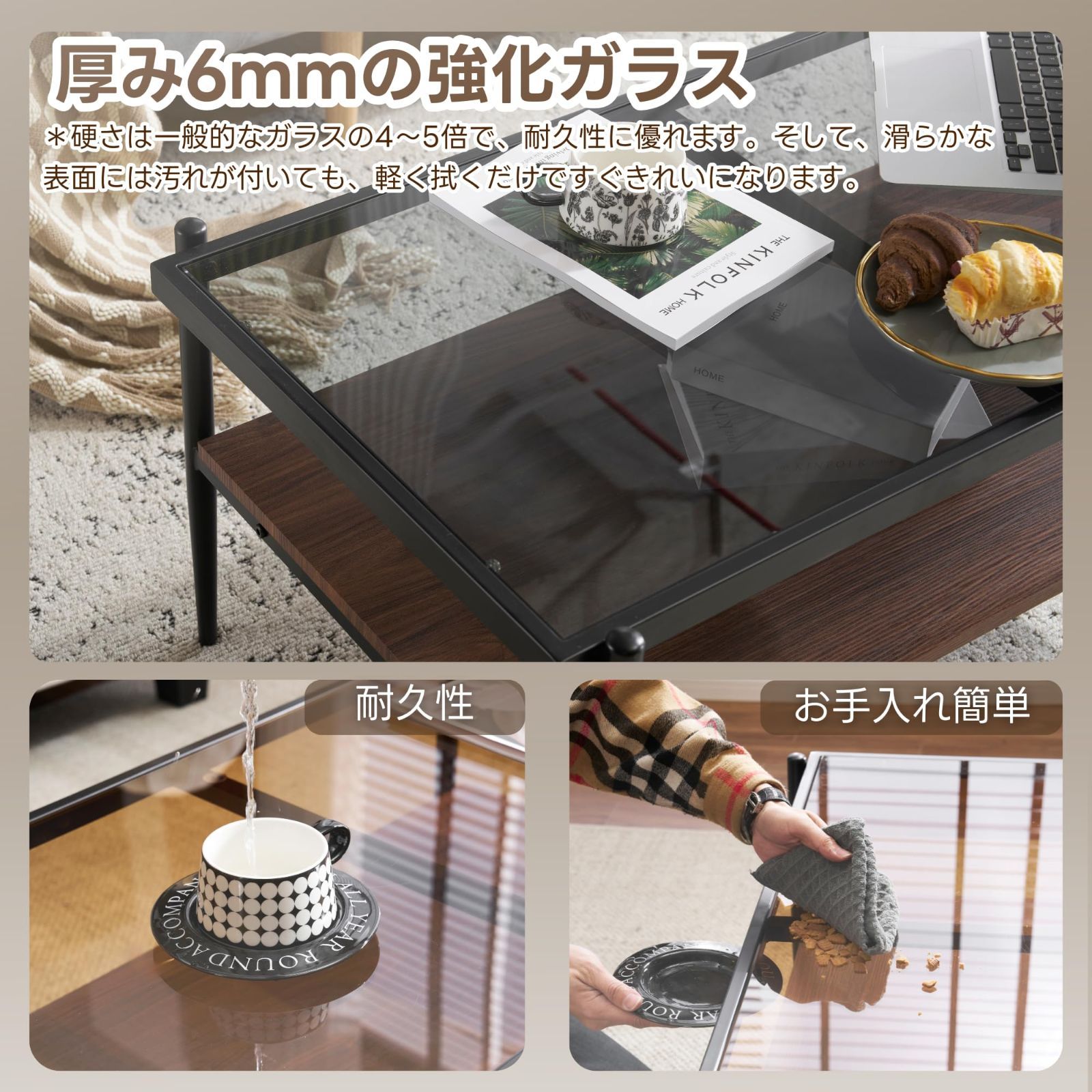 オーエスジェイ(OSJ) ガラステーブル ローテーブル高級 二段収納 強化ガラス 収納付き リビング 強化ガラス天板 おしゃれ 一人暮らし