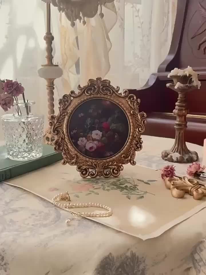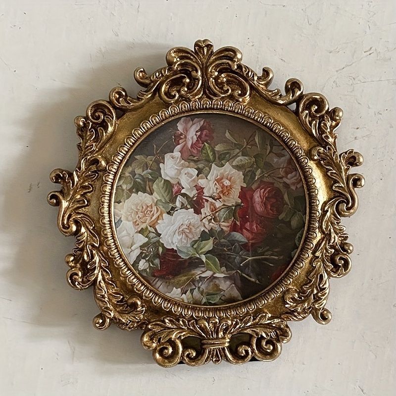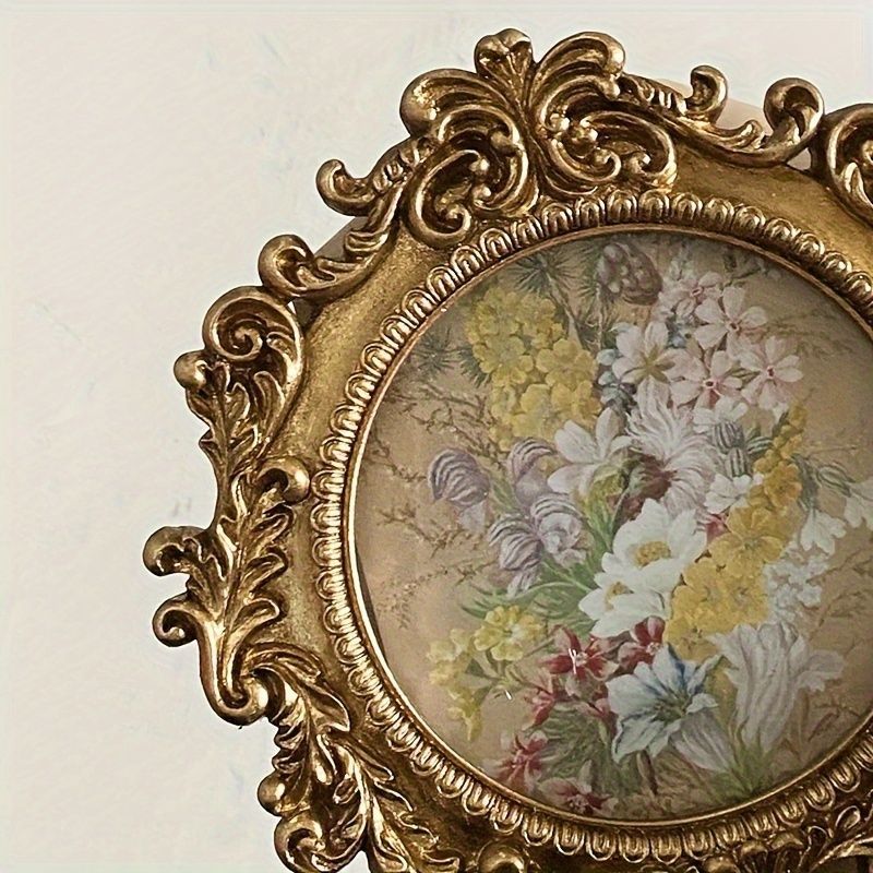 フォトフレーム ヴィンテージ エンボス加工 ラウンドフォトフレーム 卓上 壁装飾 ホーム オフィス 寝室 玄関 装飾用 ホームデコレーション ヨーロッパ アンティーク風 樹脂製 おしゃれ 絵画 イラスト 写真 結婚式 ウェディング ゴールド